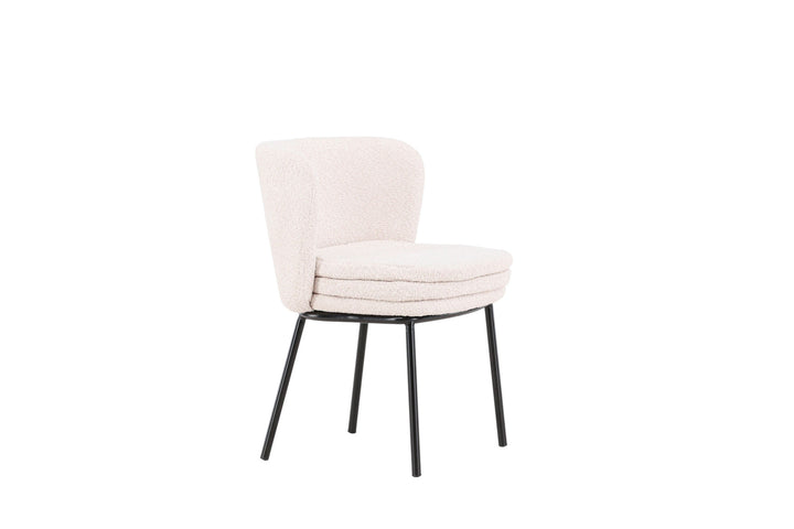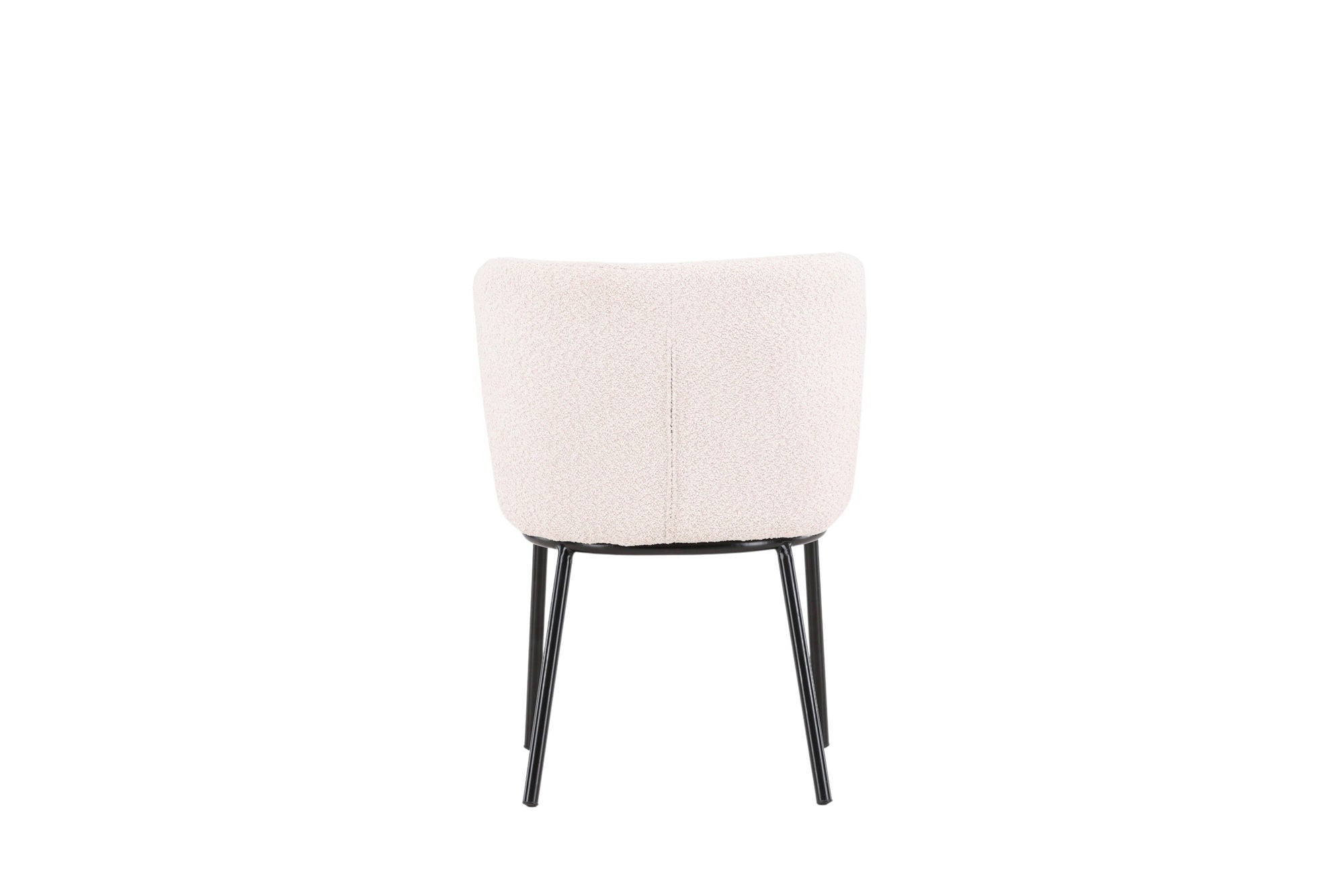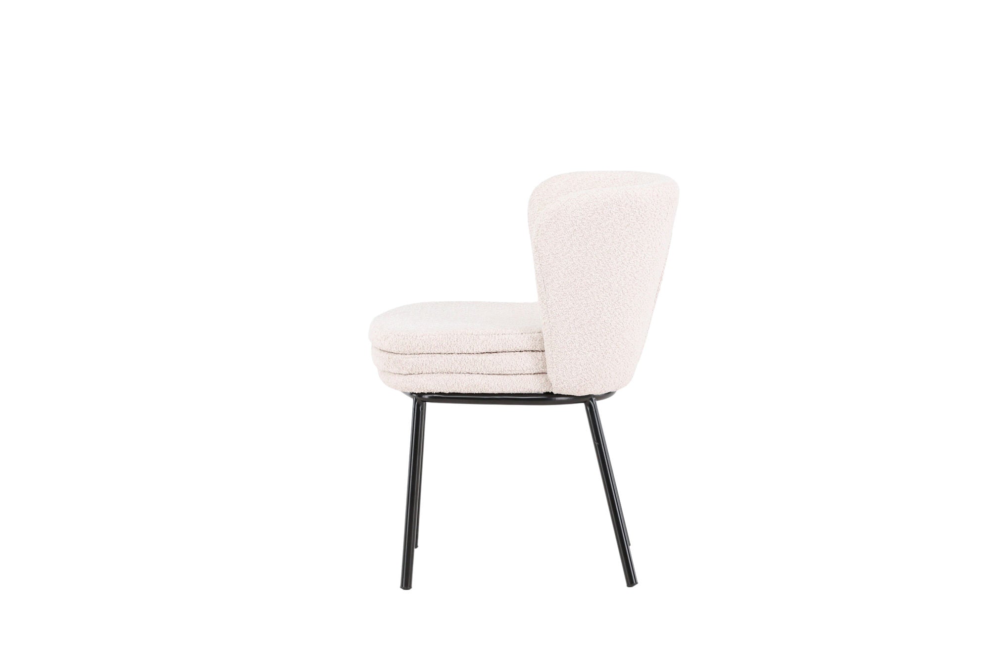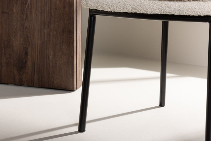 Der Agnes Esszimmerstuhl verbindet modernes Design mit zeitloser Eleganz und wird schnell zum Highlight in Ihrem Essbereich. Die Sitzfläche ist mit edlem, weißem Bouclé-Stoff bezogen, der durch seine weiche Struktur nicht nur Gemütlichkeit ausstrahlt, sondern auch ein luxuriöses Sitzgefühl vermittelt. Getragen wird der Stuhl von filigranen, schwarzen Stahlbeinen, die einen stilvollen Kontrast schaffen und dem Design eine moderne Leichtigkeit verleihen.