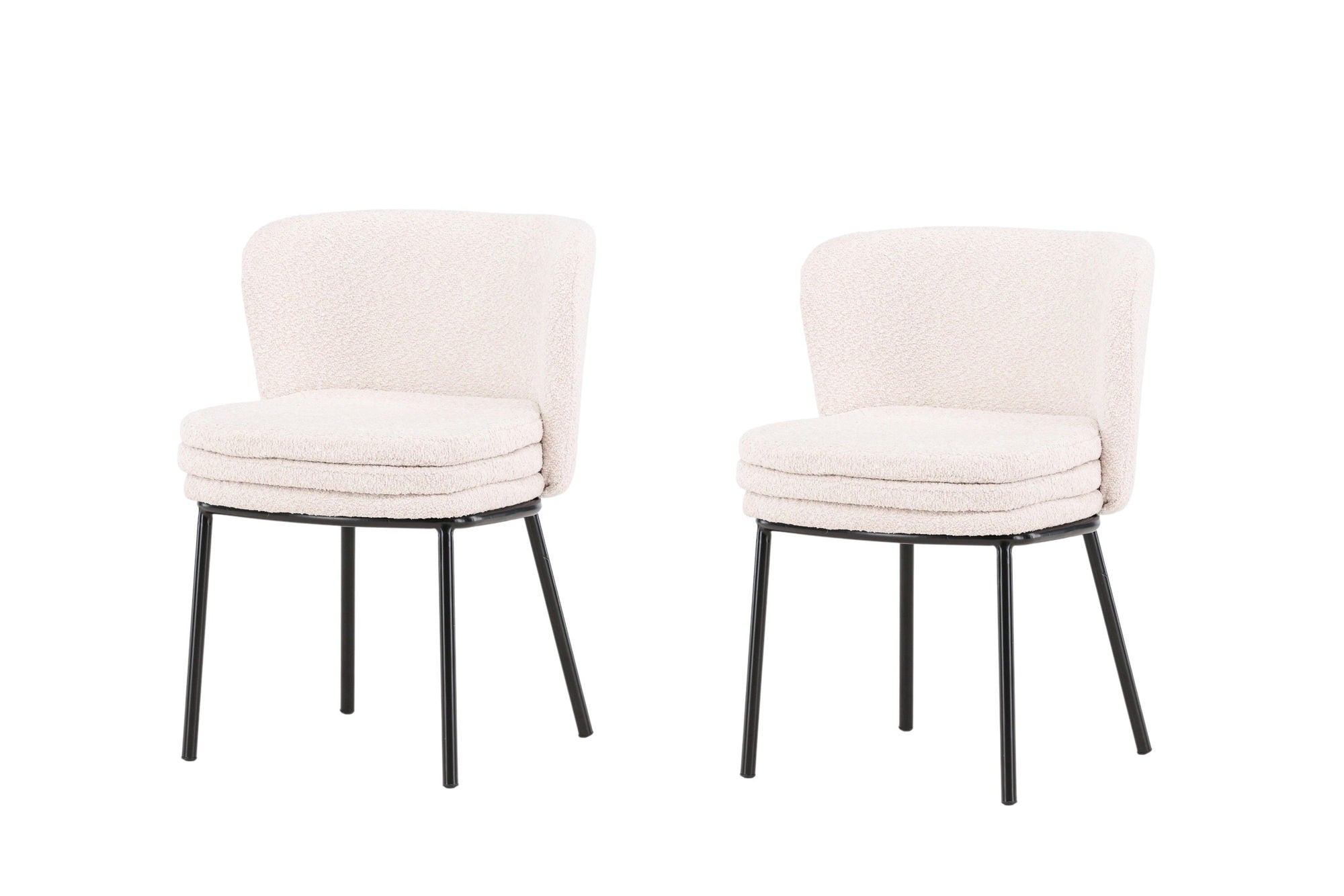 Agnes Esszimmerstuhl 2er-Set – Schwarz / Weiß Bouclé