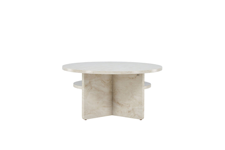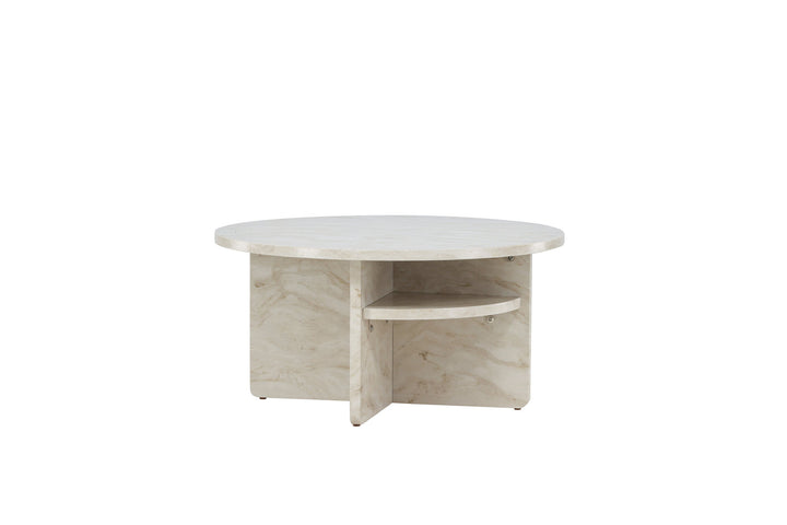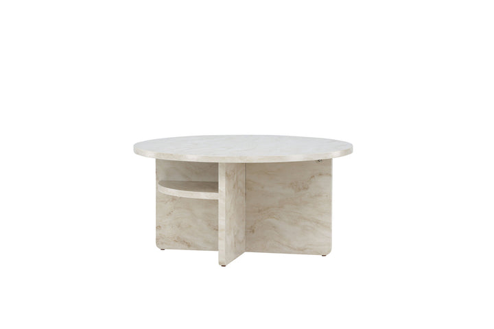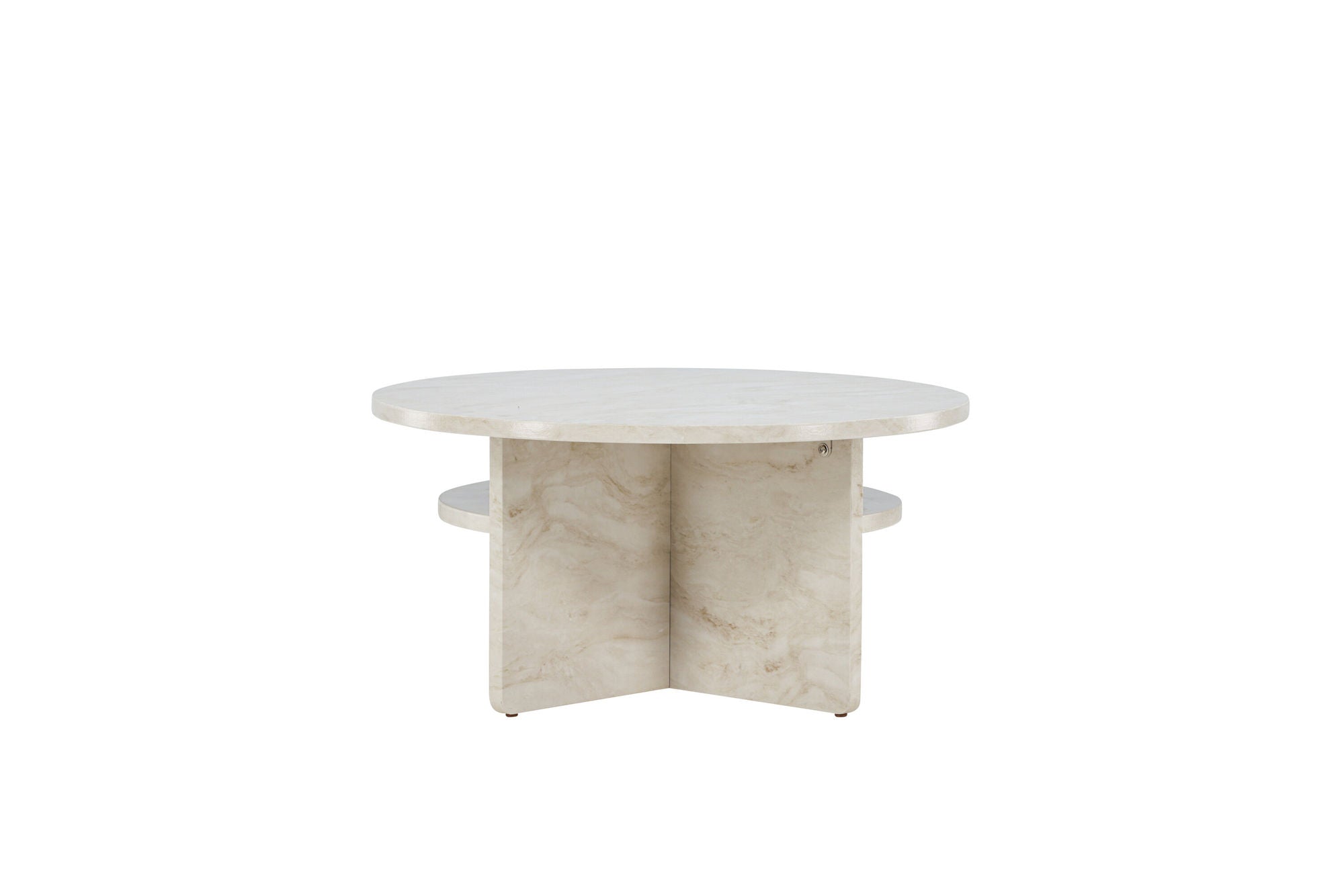 Gefertigt aus MDF mit edler Marmoroptik in Beige, bringt der Tisch eine helle und einladende Atmosphäre in den Raum. Die runde Form unterstreicht das harmonische Design und fügt sich nahtlos in verschiedene Wohnstile ein – von modern-minimalistisch bis klassisch-elegant.