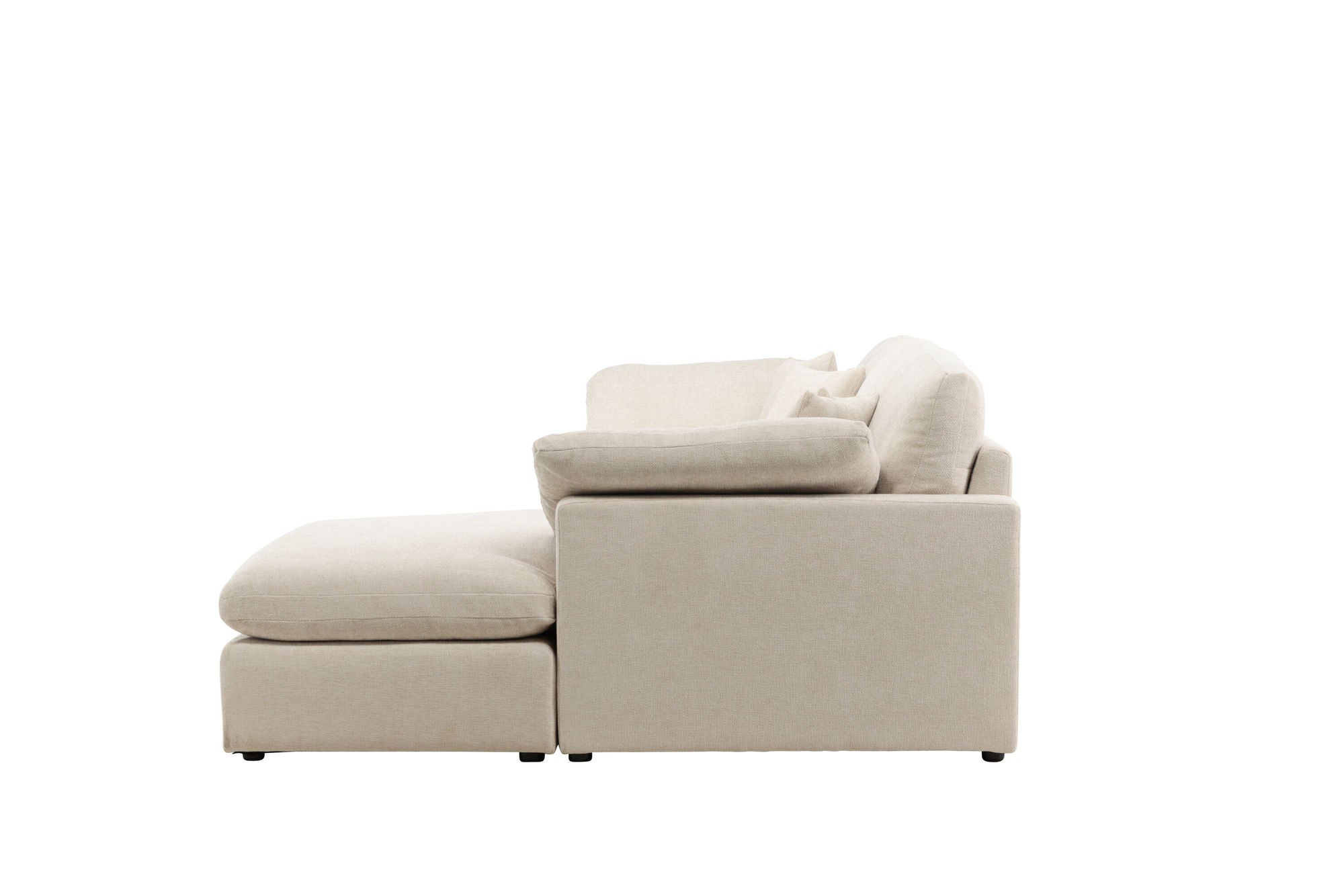 Entdecken Sie das perfekte Zusammenspiel aus Komfort und Eleganz mit dem Amalfi Ecksofa – ein echtes Highlight für Ihr Wohnzimmer. Der hochwertige Polyesterbezug in sanftem Beige verleiht dem Sofa eine warme, einladende Ausstrahlung und sorgt gleichzeitig für Strapazierfähigkeit und leichte Pflege – ideal für den modernen Alltag.