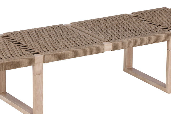 Die Ängön Bank überzeugt mit modernem Design und vielseitiger Funktionalität. Ihr Untergestell aus weiß gekalktem Stahl in klaren, nordischen Linien wird durch die Sitzfläche aus strapazierfähigem Naturseil ergänzt. Das Zusammenspiel von natürlichen Materialien und erdigen Farben schafft einen harmonischen Gesamteindruck und verleiht deinem Zuhause eine warme, einladende Atmosphäre.
