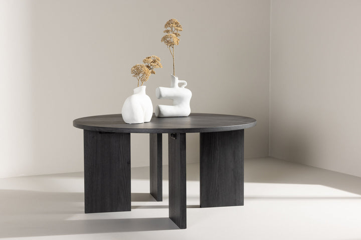 Gefertigt aus hochwertigem MDF in tiefem Schwarz, verbindet der Tisch zeitlose Eleganz mit moderner Schlichtheit. Seine klare Gestaltung macht ihn vielseitig einsetzbar – ob im Wohnzimmer, im Lounge-Bereich oder im Arbeitszimmer. Dank seiner runden Form wirkt er harmonisch und einladend, während die dunkle Oberfläche für ein edles Ambiente sorgt.