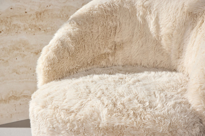 Der Astru Sessel vereint modernen Minimalismus mit kuscheligem Komfort und wird im Handumdrehen zum Lieblingsplatz in deinem Zuhause. Mit seinem weichen Bezug in beigefarbenem Kunstfell bringt er Wärme und Gemütlichkeit in jeden Raum – egal ob im skandinavisch inspirierten Wohnzimmer oder in einer gemütlichen Leseecke.