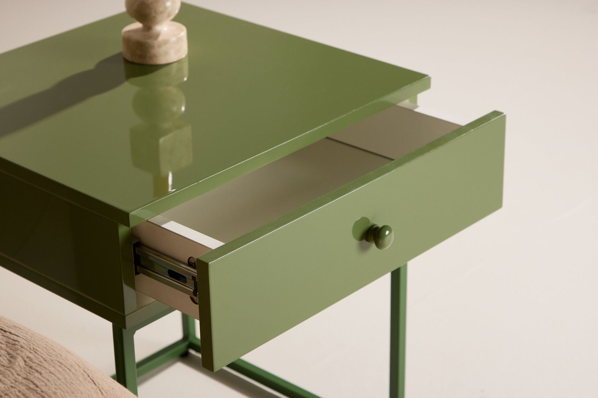 Entdecke die perfekte Kombination aus Eleganz und Funktionalität mit dem Bakal Nachttisch. In frischem Grün gestaltet, wird er zum stilvollen Blickfang im Schlafzimmer und bietet zugleich praktische Aufbewahrungsmöglichkeiten.
