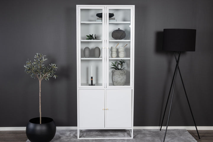 Der Vitrinenschrank aus der Bakal-Serie ist eine elegante Ergänzung für jedes Zuhause und bietet stilvolle Aufbewahrungsmöglichkeiten. Gefertigt aus weiß pulverbeschichtetem Stahl überzeugt er mit klaren Linien und modernem Design.