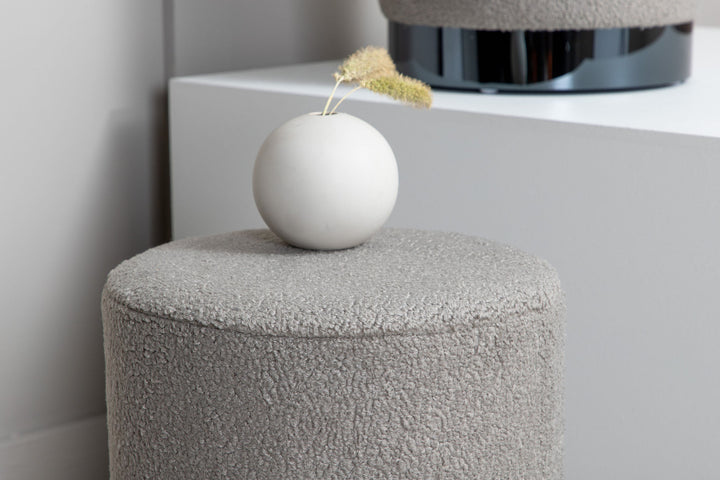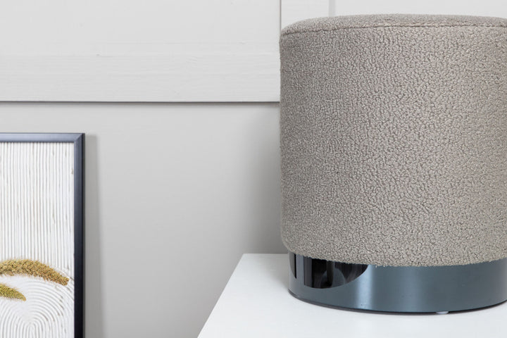 Der Hocker Benji verleiht Ihrem Zuhause im Handumdrehen eine trendbewusste Atmosphäre und ist ein smarter Allrounder für jedes Wohnkonzept. Mit seinem zylindrischen Design und dem angesagten Greige-Farbton im kuscheligen Teddy-Stoff sorgt er für ein warmes und stilvolles Ambiente.