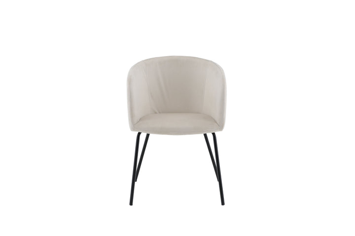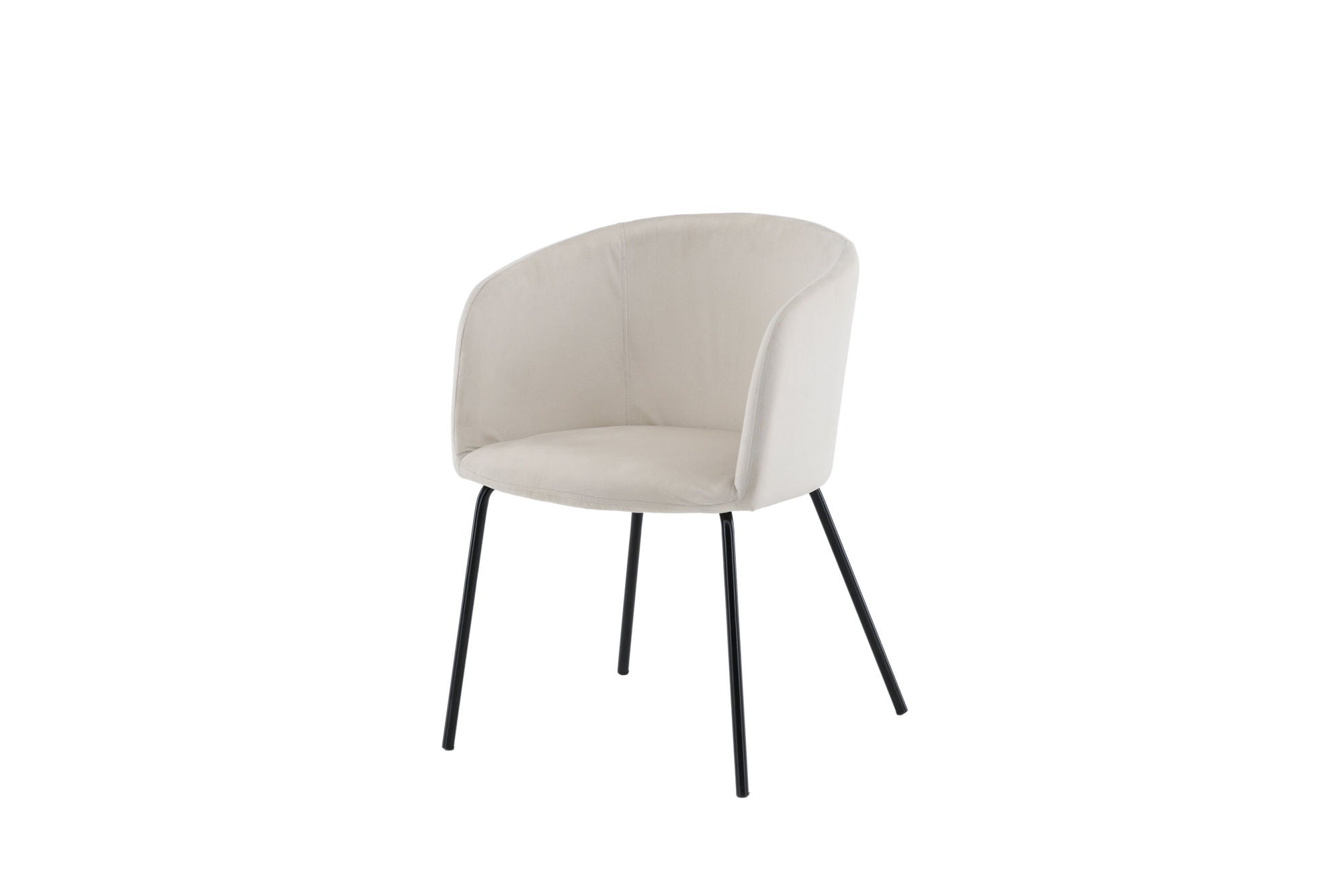 Setzen Sie ein stilvolles Statement mit dem Berit Stuhl, der modernes Design und wohnliche Eleganz perfekt vereint. Der edle Bezug in softem Beige aus Samt und Polyester-Leinen verleiht dem Stuhl eine luxuriöse Haptik und sorgt gleichzeitig für Gemütlichkeit.