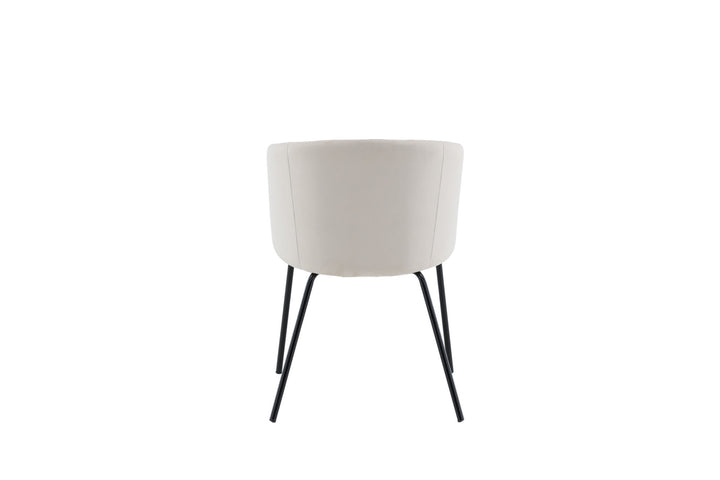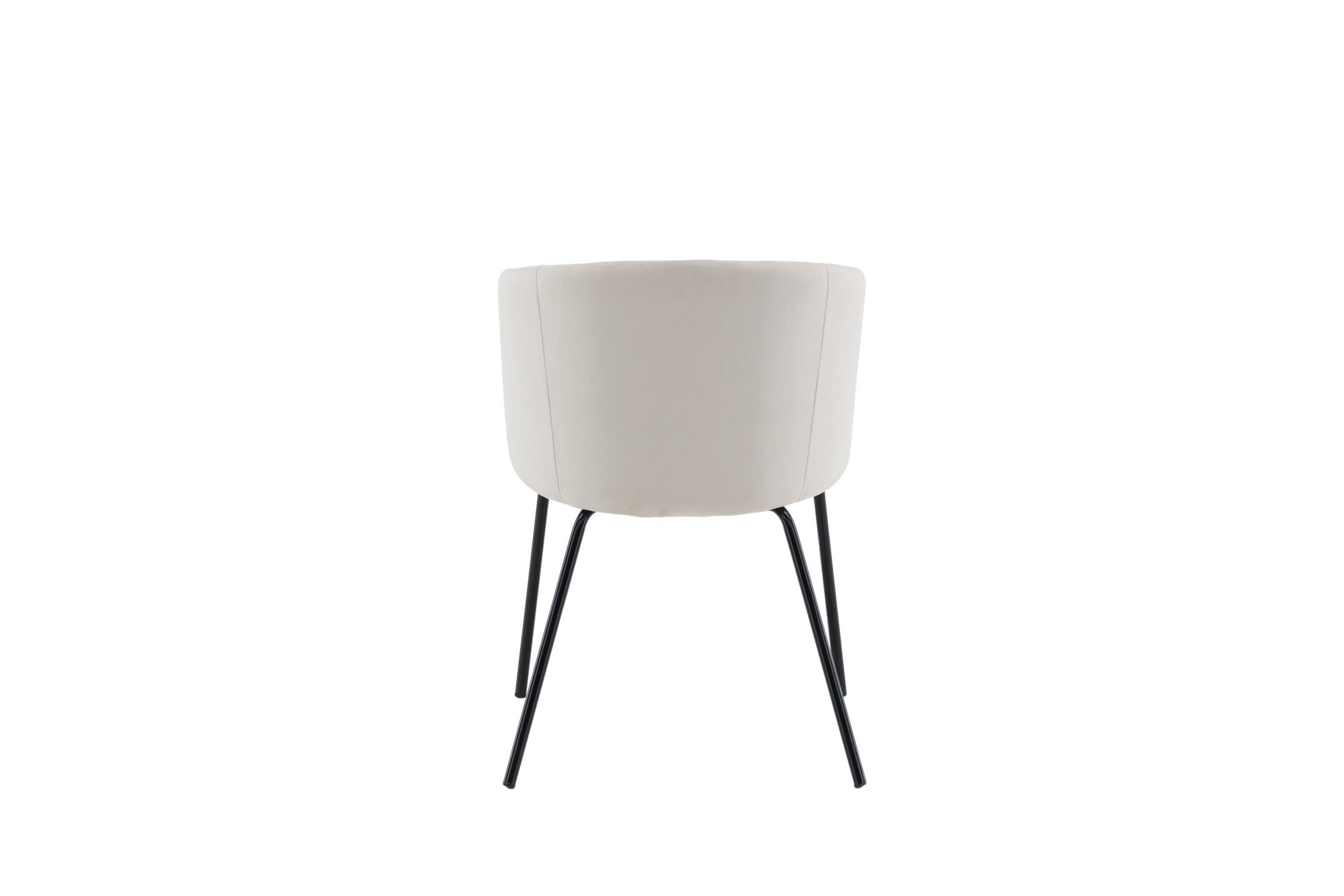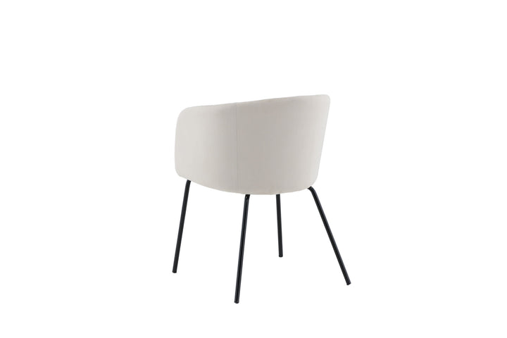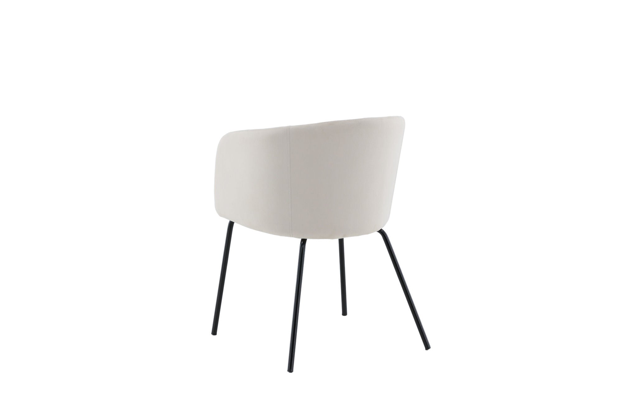 Die leicht abgerundete Rückenlehne und die weich gepolsterte Sitzfläche laden zu langen, entspannten Mahlzeiten ein. Schlanke, schwarze Beine aus robustem Eisen runden das Design ab und bringen einen modernen Kontrast ins Spiel.