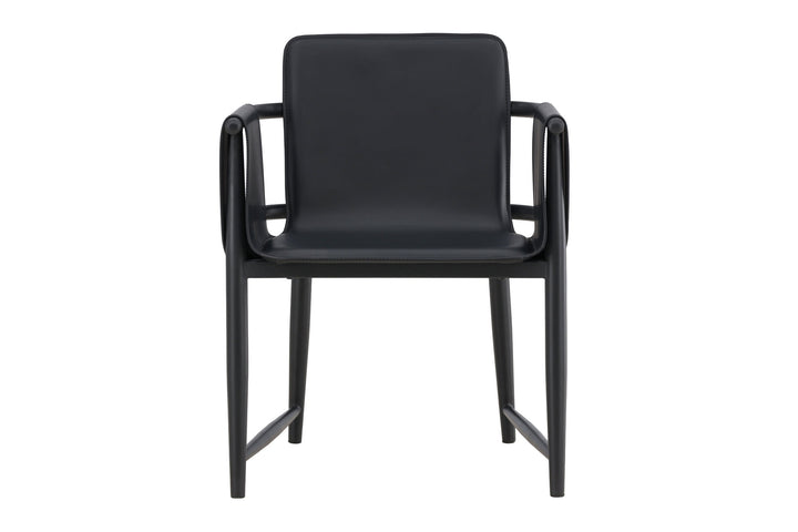 Ein moderner Esszimmerstuhl mit Armlehnen, der sowohl optisch als auch funktional begeistert.
