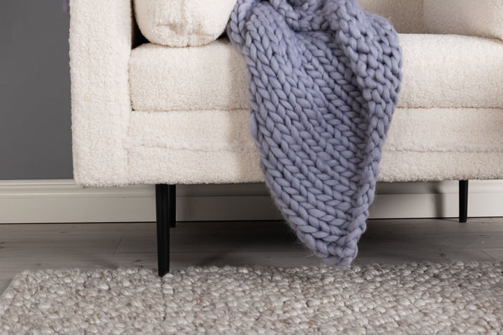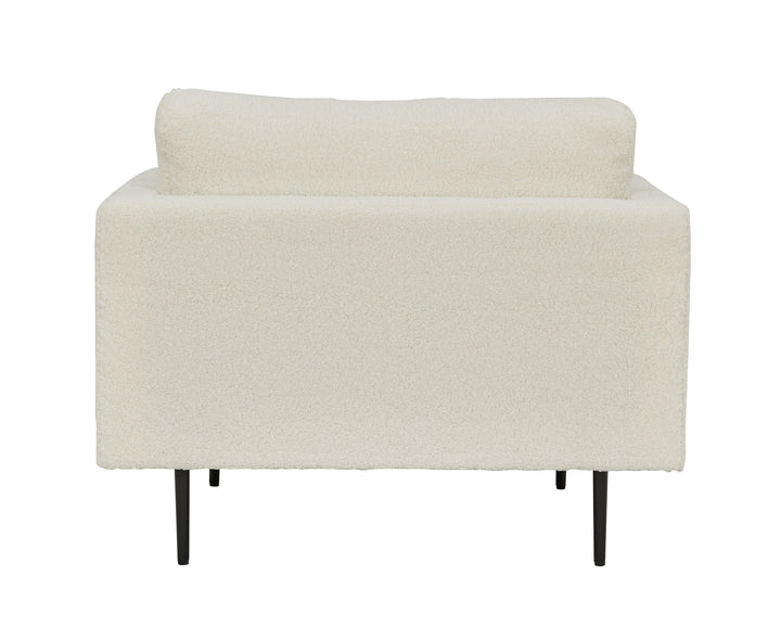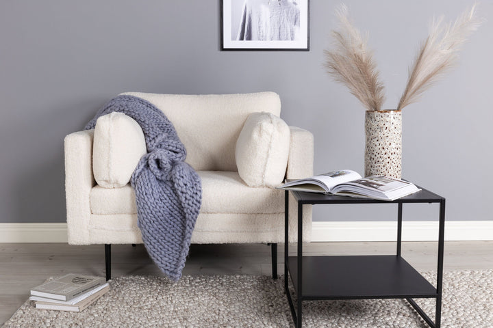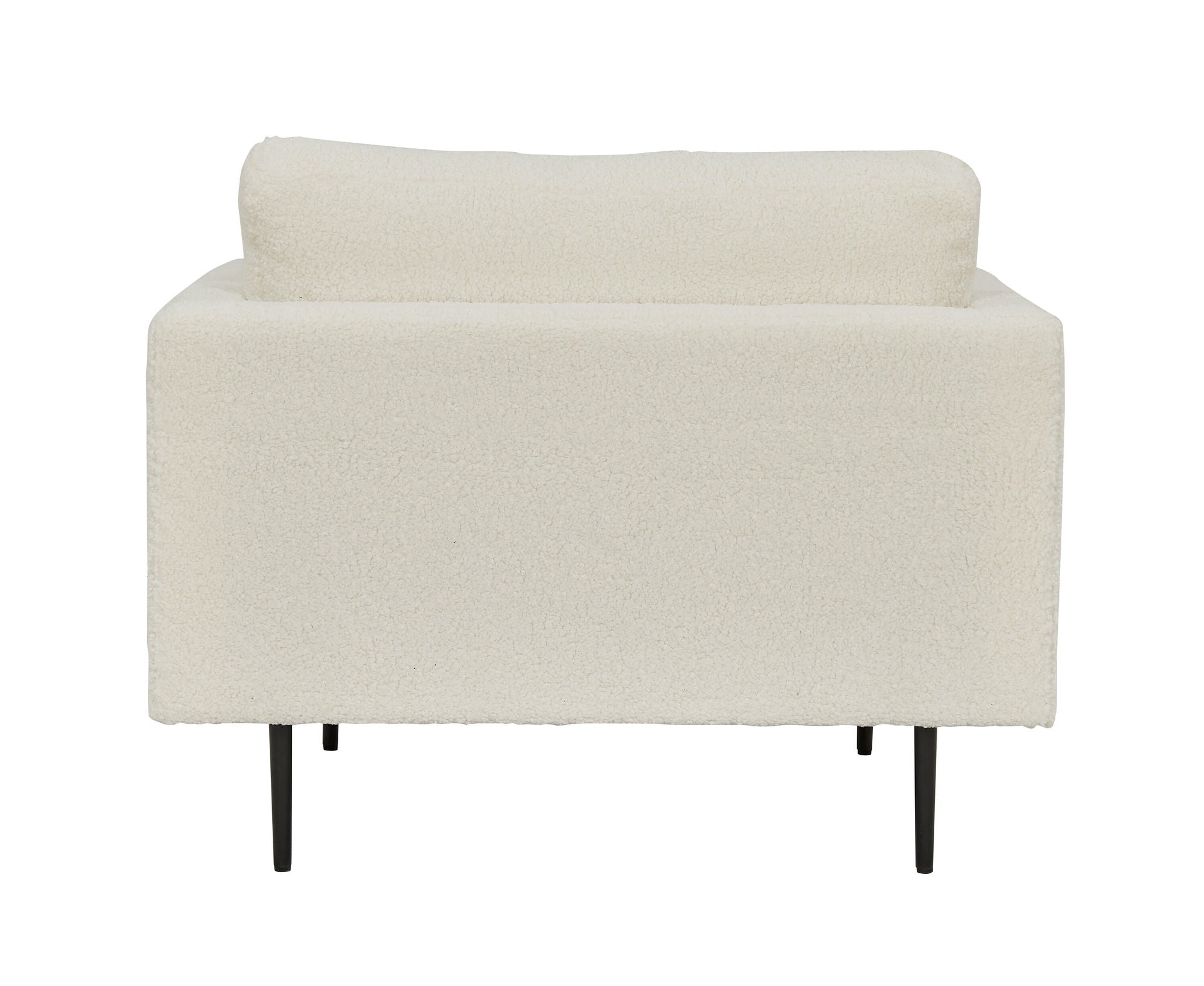 Das nordisch inspirierte Design mit klaren Linien und schmalen Metallbeinen sorgt für einen modernen Look, während die weiche, flauschige Oberfläche des Teddy-Stoffes pure Behaglichkeit vermittelt. Ob als stilvoller Akzent im Wohnzimmer, Rückzugsort im Schlafzimmer oder gemütliche Leseecke – Boom schafft überall eine einladende Atmosphäre.