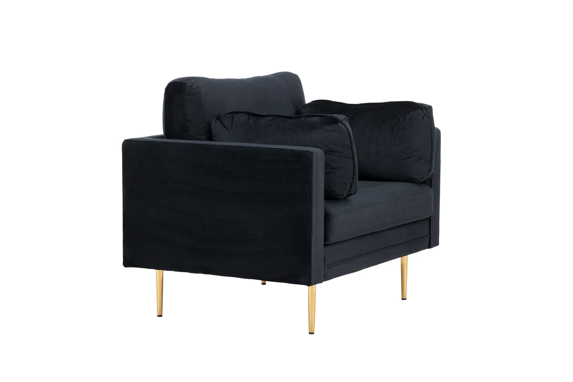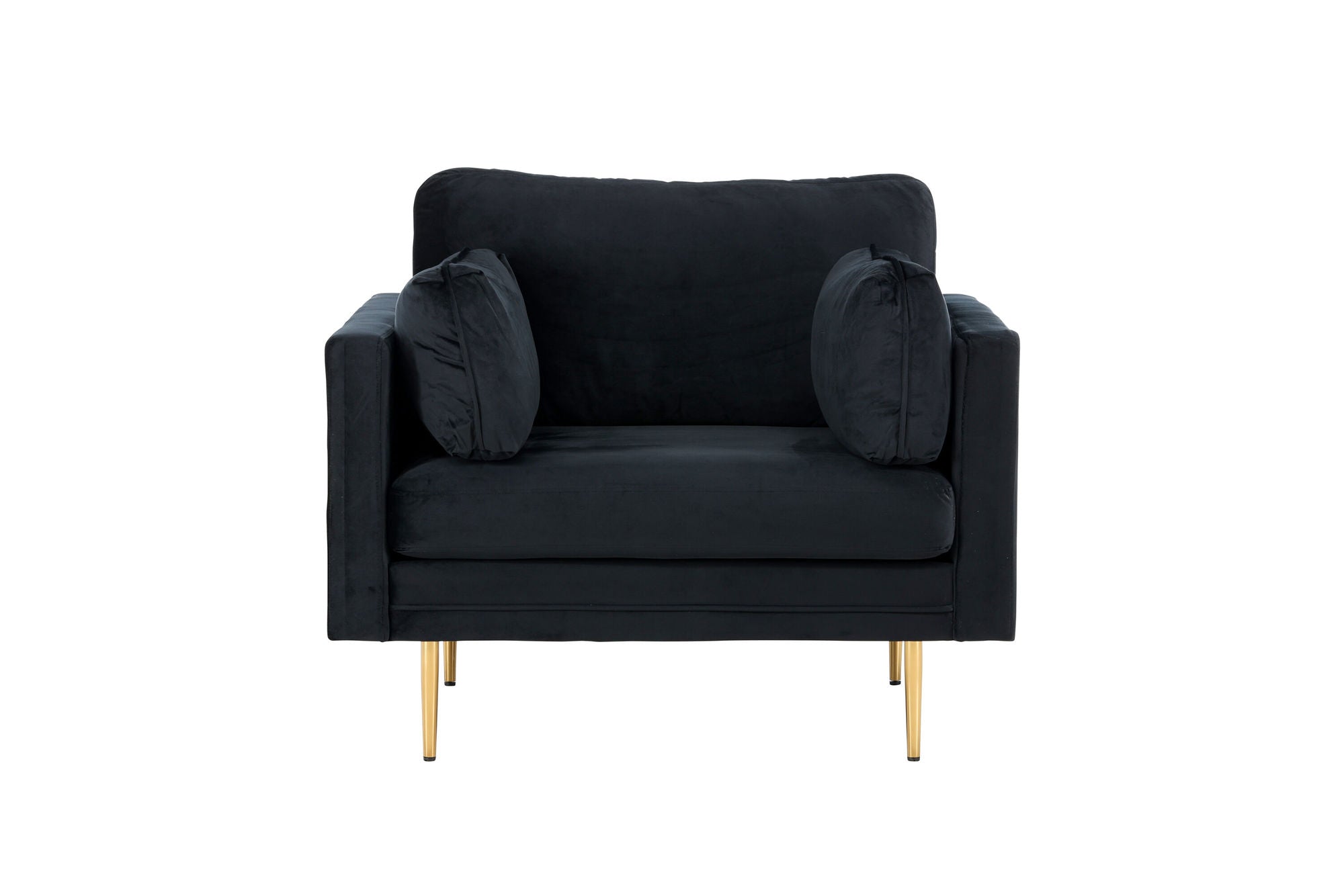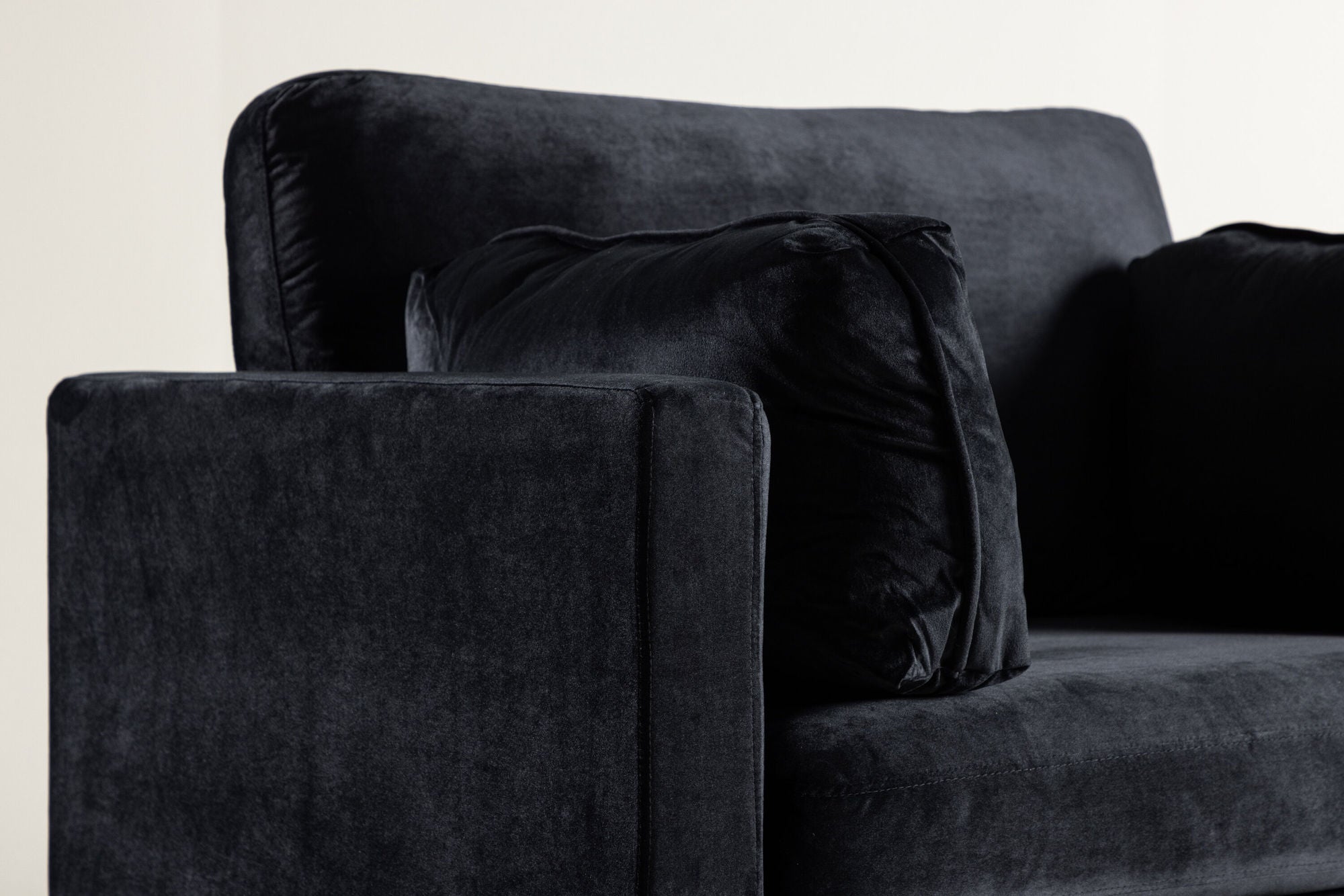 Der Boom Sessel vereint modernes Design mit luxuriösem Sitzkomfort. Komplett in edlem schwarzem Samt bezogen, bringt er Eleganz und einen feinen Glanz in dein Wohnzimmer. Die geradlinige, aber dennoch weiche Formensprache wirkt stilvoll und zeitlos, während die schlanken, hohen Metallbeine dem Design eine luftige Leichtigkeit verleihen.