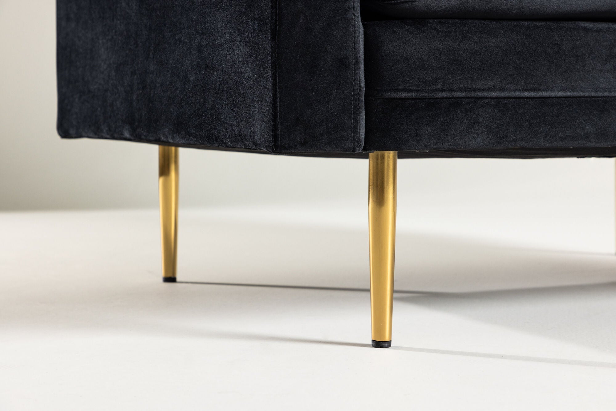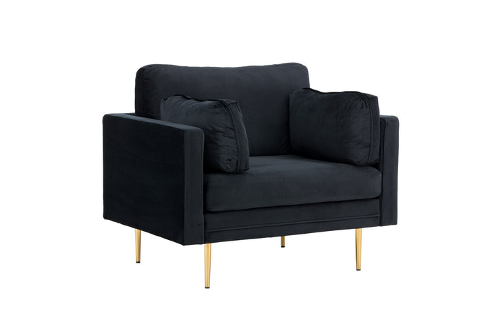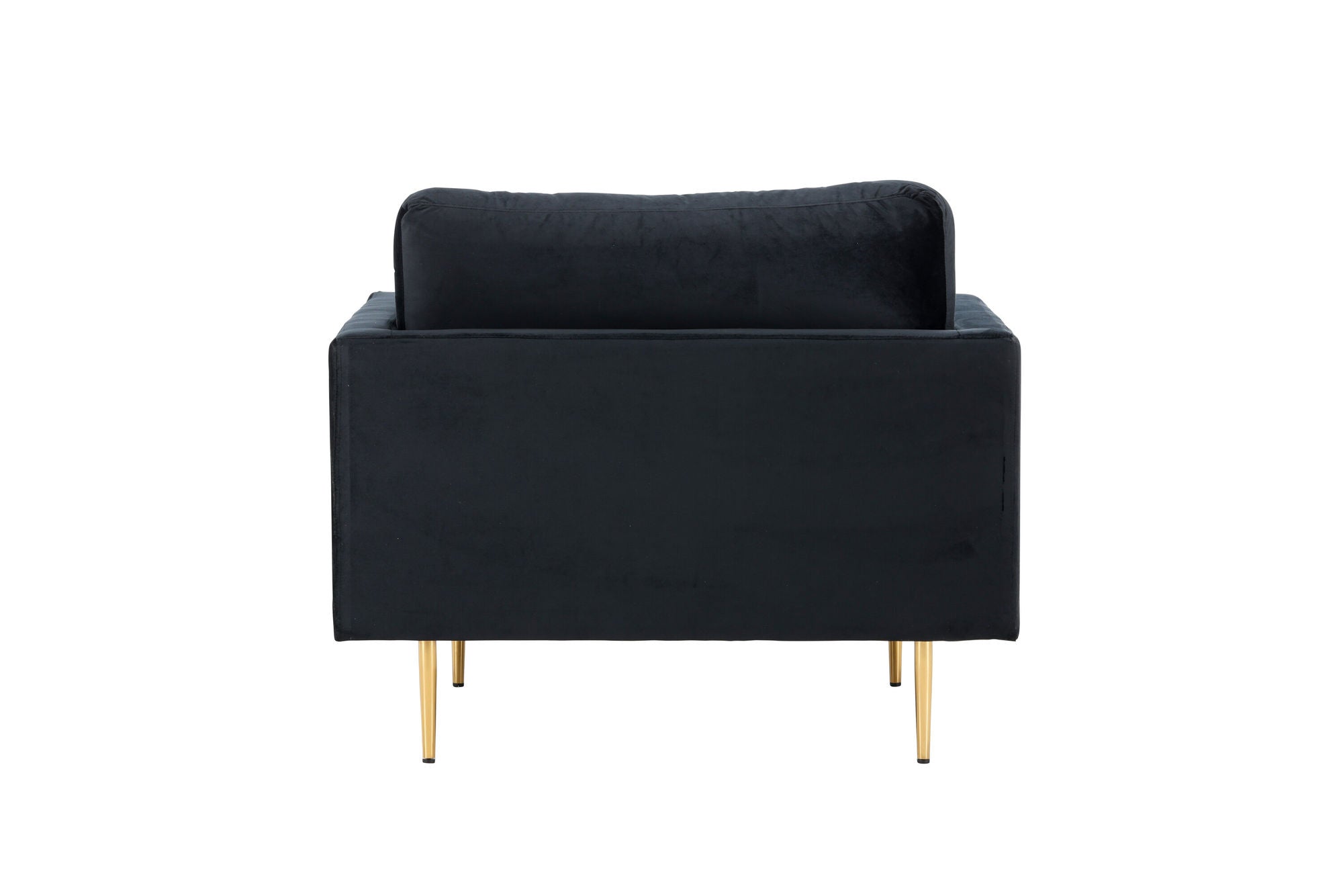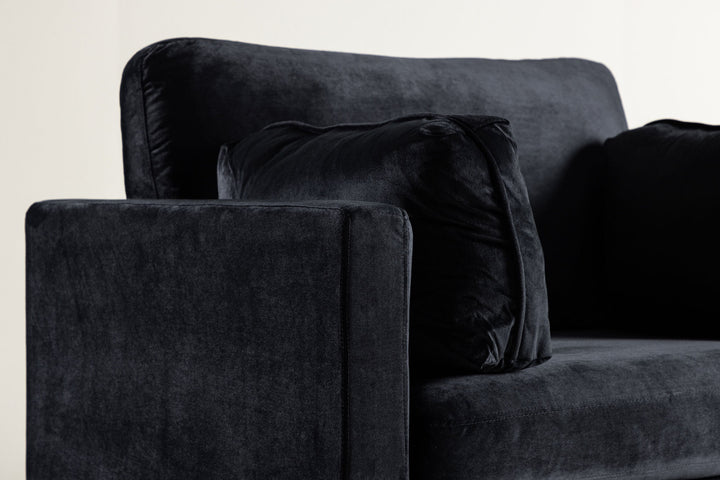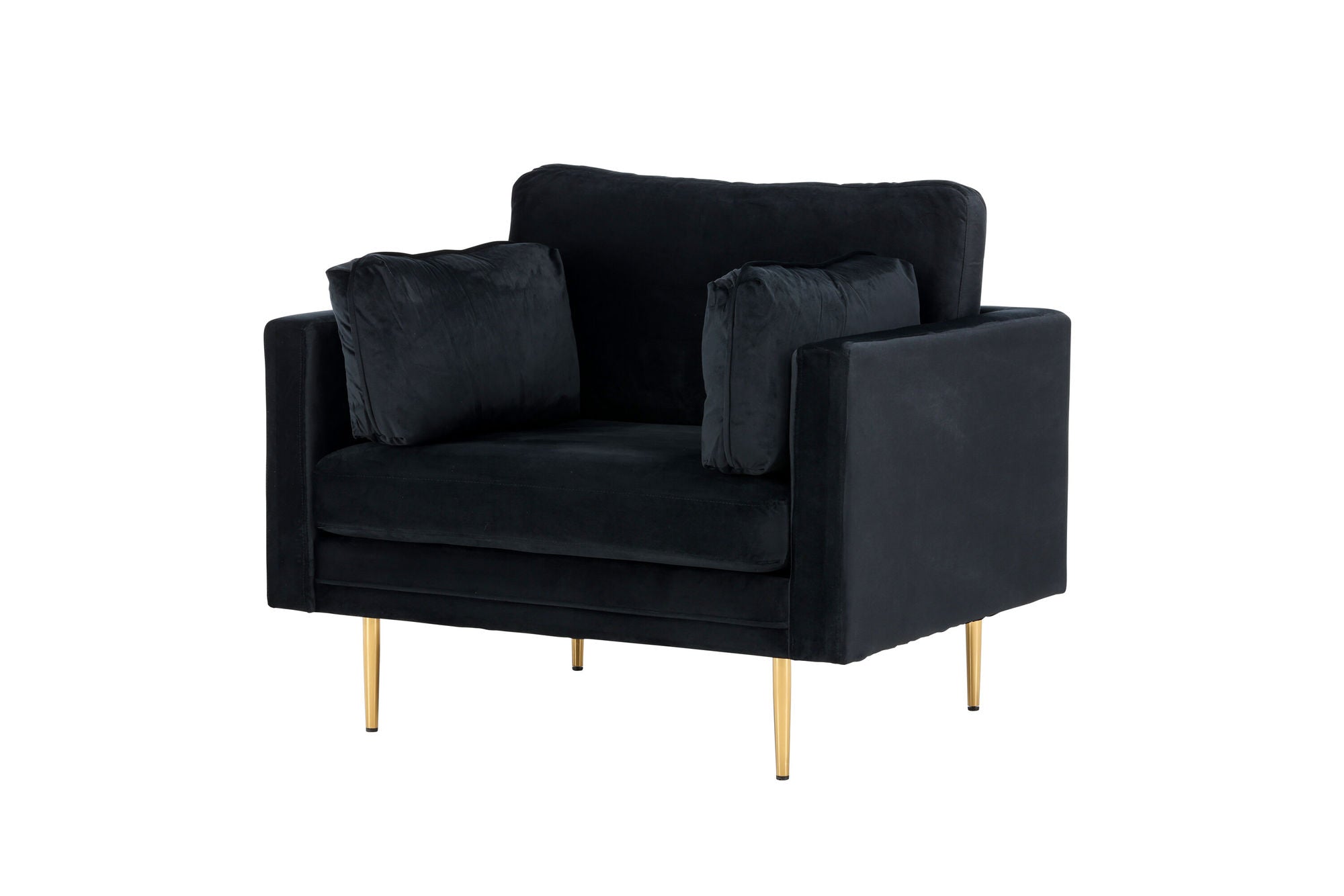 Der Boom Sessel vereint modernes Design mit luxuriösem Sitzkomfort. Komplett in edlem schwarzem Samt bezogen, bringt er Eleganz und einen feinen Glanz in dein Wohnzimmer. Die geradlinige, aber dennoch weiche Formensprache wirkt stilvoll und zeitlos, während die schlanken, hohen Metallbeine dem Design eine luftige Leichtigkeit verleihen.
