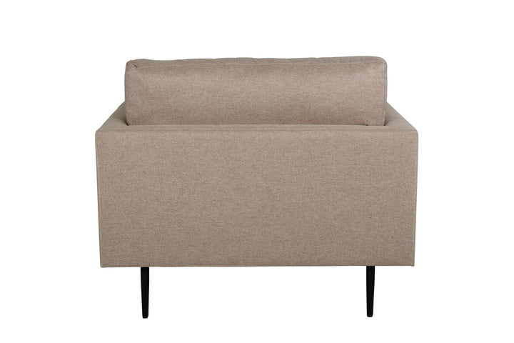 Verleihe deinem Zuhause einen modernen Eyecatcher mit dem Boom Sessel. In elegantem Braunton bezogen und mit einem klaren, geradlinigen Design wird er schnell zum Highlight in jedem Raum. Die schwarzen Metallbeine unterstreichen den stilvollen Look und sorgen gleichzeitig für Stabilität. Dank der großzügigen Sitztiefe lädt der Sessel zu langen, entspannten Momenten ein – ob als Solitär im Wohnbereich oder in Kombination mit weiteren Möbeln der Boom-Serie.