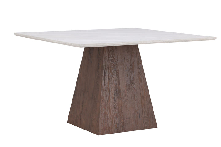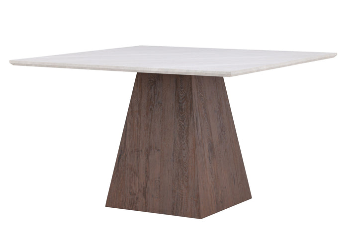 Der quadratische Esstisch Cael überzeugt mit einem modernen Design und einer eleganten Steinoptik. Die Tischplatte aus MDF mit 3D-Papier im natürlichen Steindekor verleiht dem Tisch eine edle Ausstrahlung, während das stabile Gestell in Mocca einen warmen Kontrast setzt.