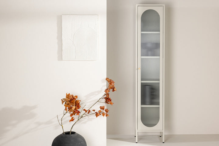 Der Schrank ist komplett aus robustem Stahl gefertigt und überzeugt durch seine langlebige Qualität. Die elegante beige Farbgebung verleiht Cali einen zeitlosen Charakter, der sowohl in moderne als auch in klassische Einrichtungsstile passt und jedem Raum eine warme Note verleiht.
