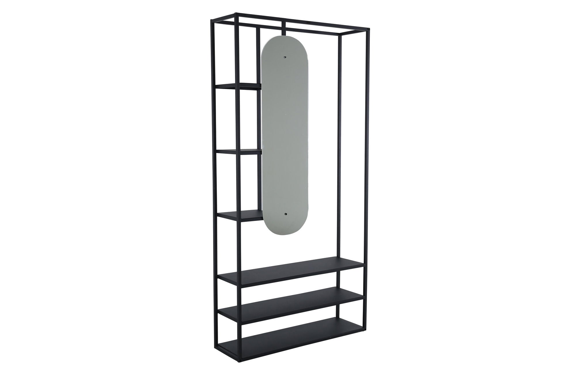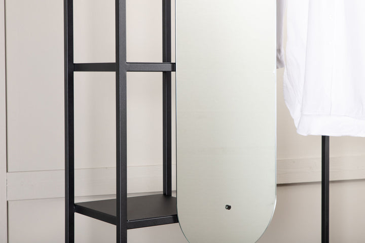 Mehrere Ablageflächen in unterschiedlichen Größen bieten dir genügend Platz für Kleidung, Schuhe oder Accessoires. Das besondere Highlight: der integrierte Spiegel, der dir das Ankleiden am Morgen erleichtert und den Raum zusätzlich heller und größer wirken lässt.