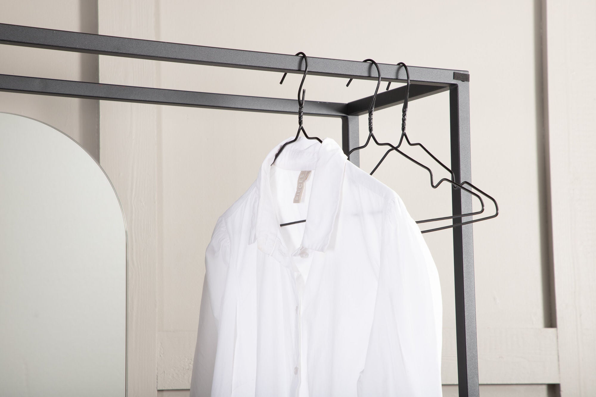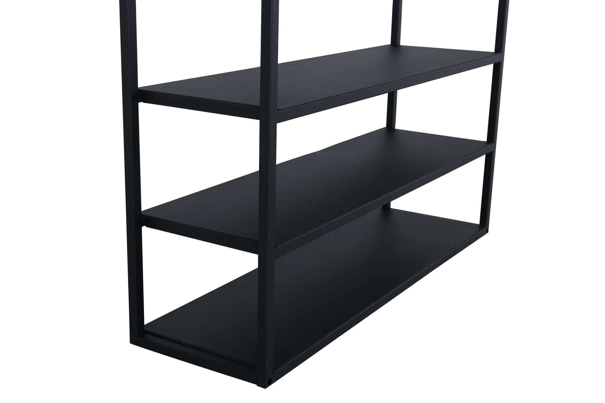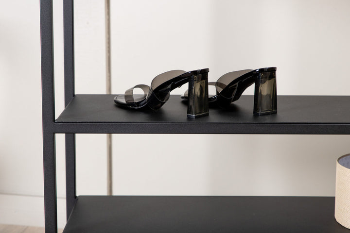 Mit dem Kleiderschrank Classe erhältst du eine perfekte Kombination aus praktischer Aufbewahrung und stilvoller Einrichtung. Das offene Design in schwarzem Metall wirkt modern und leicht industriell, sodass es sich harmonisch in verschiedene Wohnstile einfügt.