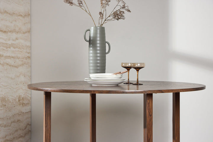 Gefertigt aus MDF mit Walnuss-Dekor und einem stabilen Stahlgestell, überzeugt Durango durch seine warme Farbgebung, die Tiefe und Eleganz in den Raum bringt. Die runde Form fördert Kommunikation und Zusammengehörigkeit – perfekt für Familienessen oder lange Gespräche mit Freunden.