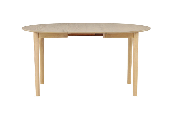 Die Oberfläche in weiß veredelter Optik sorgt für einen hellen und freundlichen Charakter, der sich mühelos in verschiedenste Einrichtungsstile einfügt. Die runde Form schafft eine einladende Atmosphäre, in der alle Gäste gleichberechtigt Platz finden und sich wohlfühlen.