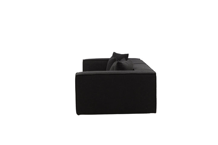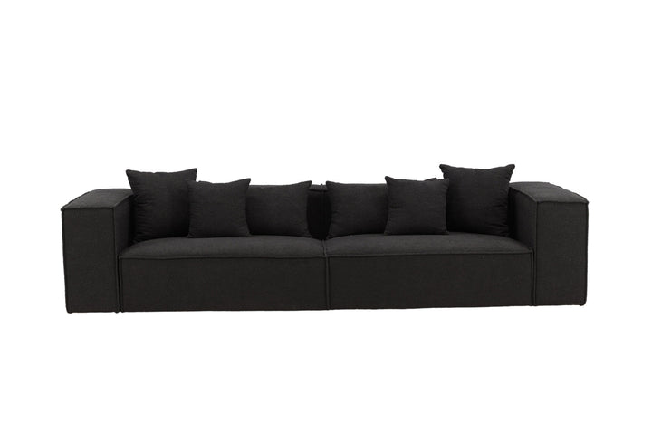 Bringen Sie Ihr Wohnzimmer auf das nächste Level mit dem eleganten Gillholmen Sofa. Mit seiner großzügigen Breite von 284 cm und der niedrigen, modernen Silhouette wird dieses Sofa schnell zum Mittelpunkt Ihrer Einrichtung. Der Bezug aus trendiger schwarzer Bouclé verleiht dem Sofa eine exklusive Ausstrahlung und kombiniert zeitlosen Stil mit wohnlicher Gemütlichkeit.