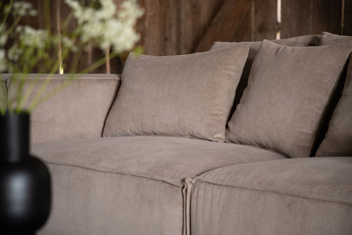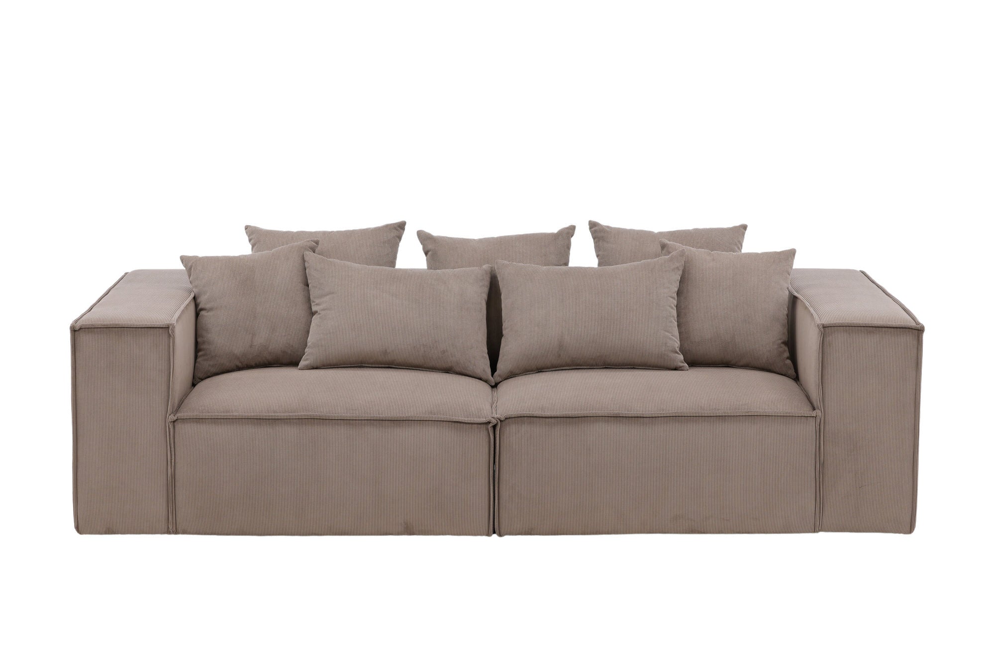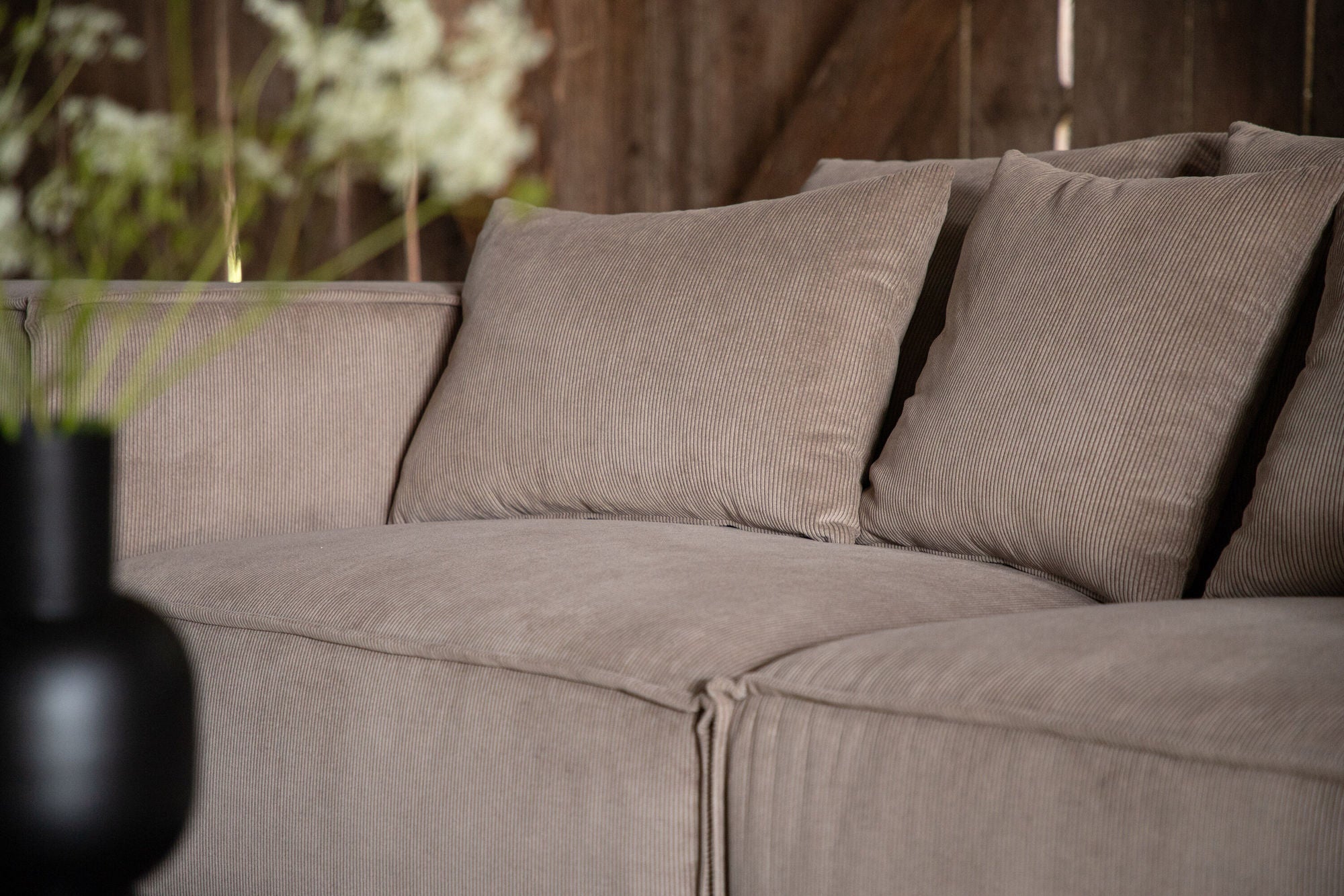 Dank der komfortablen Sitztiefe und der weichen Polsterung genießen Sie höchsten Sitzkomfort. Mehrere Kissen schmücken die Rückenlehne, sind ganz im Trend und sorgen für zusätzliche Bequemlichkeit. Die großzügig gestalteten Armlehnen verleihen dem Sofa Gewicht und Charakter – zudem lassen sie sich praktisch als Ablagefläche nutzen.