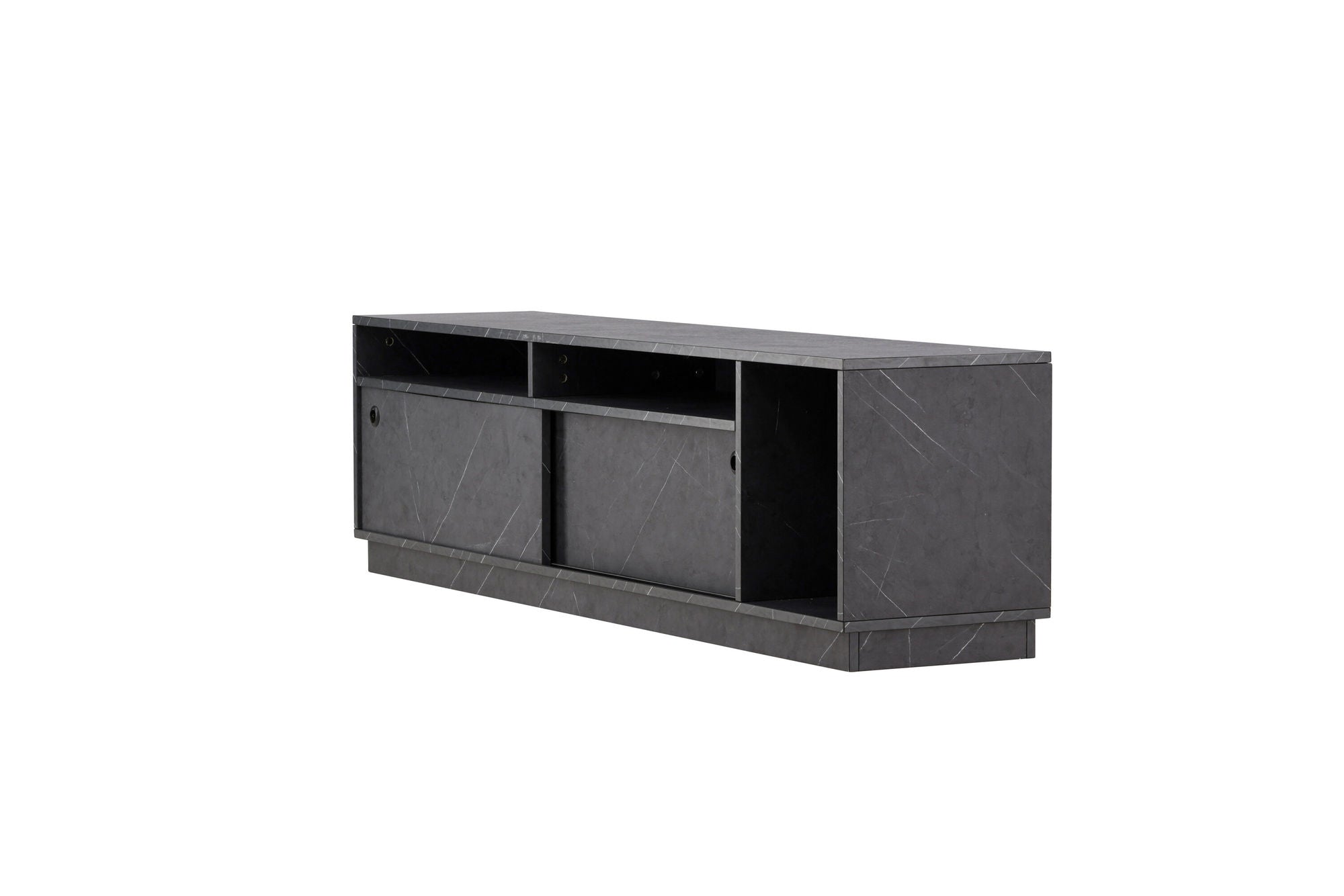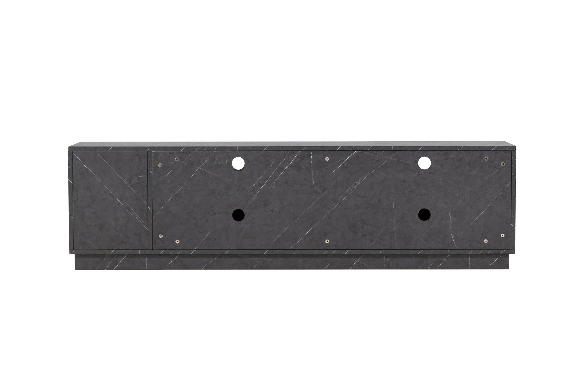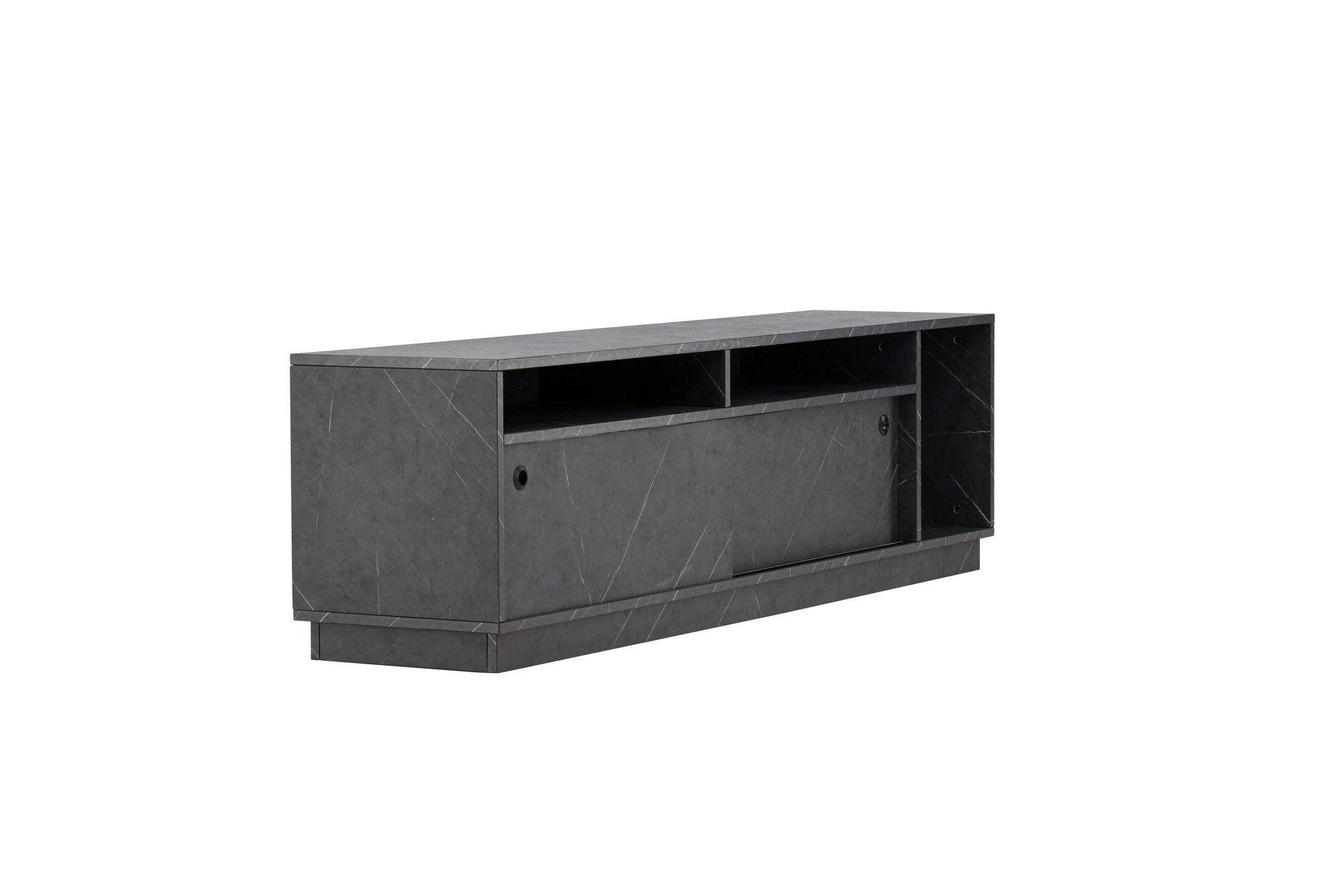 Hinter den beiden elegant gestalteten Schiebetüren verbirgt sich ein großzügiges Fach für all deine Geräte, Kabel und Fernbedienungen – praktisch organisiert und dezent verborgen. Offene Ablagefächer bieten dir zusätzlichen Platz für dekorative Details oder persönliche Highlights.