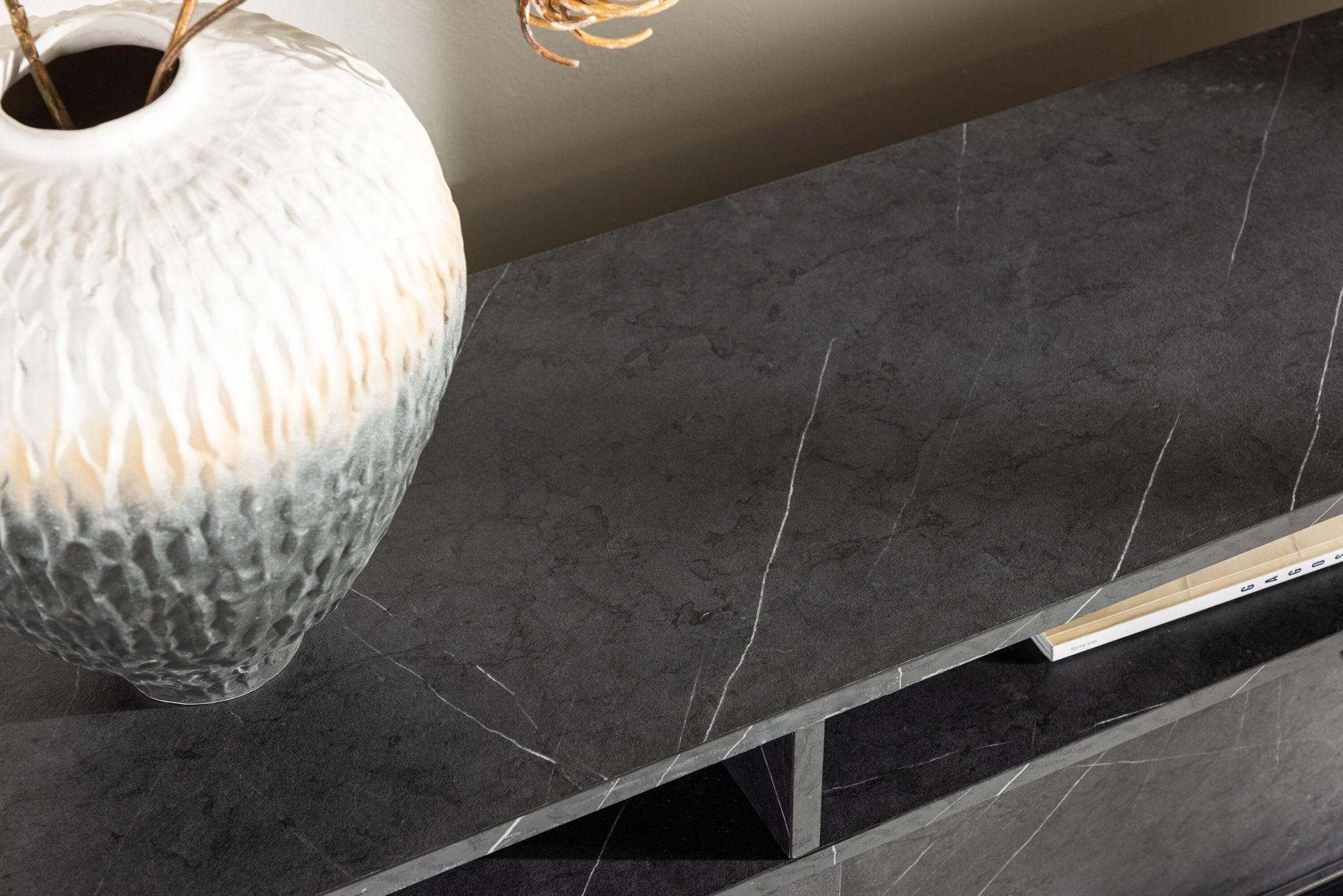 Die breite Oberplatte eignet sich perfekt, um deine Einrichtung abzurunden: Stelle elegante Kerzenhalter, Lautsprecher oder Deko-Elemente darauf und genieße dein Wohnzimmer in einer Atmosphäre, die ganz deinem Stil entspricht.