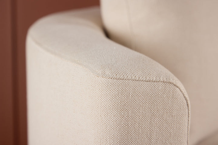 Der hochwertige Leinenbezug vereint natürliche Eleganz mit Langlebigkeit und sorgt gleichzeitig für eine angenehm weiche Haptik. Dank seiner zeitlosen Farbe lässt sich das Sofa mühelos in verschiedenste Einrichtungsstile integrieren – von modern-minimalistisch bis klassisch-elegant.
