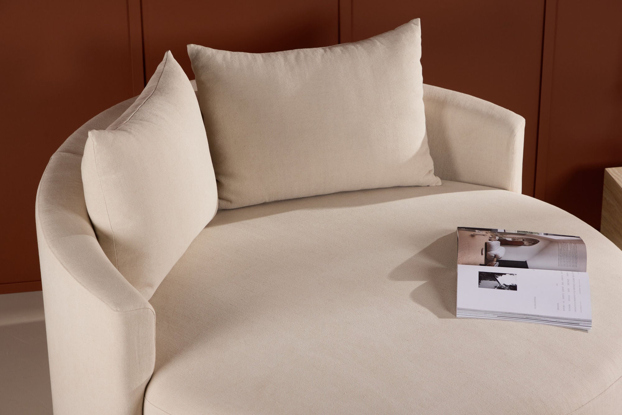 Die runde Form des Sofas schafft sofort ein Gefühl von Gemeinschaft und Zusammengehörigkeit – ideal, um Familie und Freunde stilvoll zu versammeln. Mit seiner großzügigen Sitztiefe und der ergonomisch gestalteten Rückenlehne bietet Kelso nicht nur ein beeindruckendes Design, sondern auch höchsten Sitzkomfort.