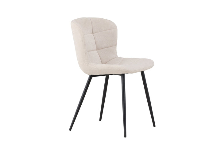 Bringen Sie stilvolle Eleganz in Ihr Zuhause mit dem Lily Esszimmerstuhl. Die Kombination aus weicher, beiger Polsterung und schlanken schwarzen Beinen schafft einen modernen Kontrast, der jedes Esszimmer aufwertet.