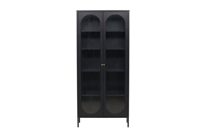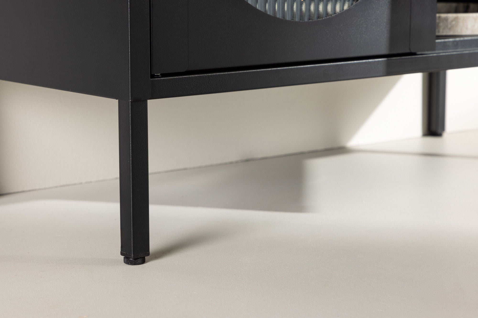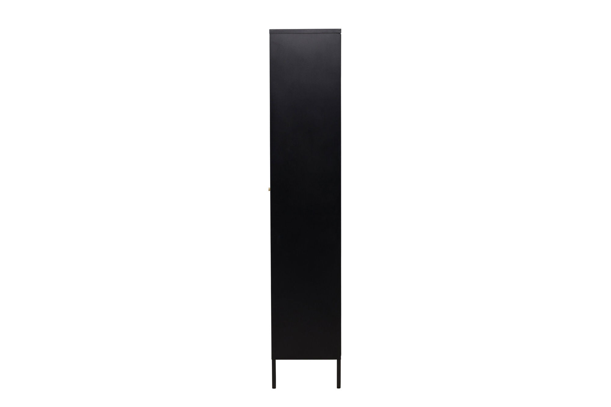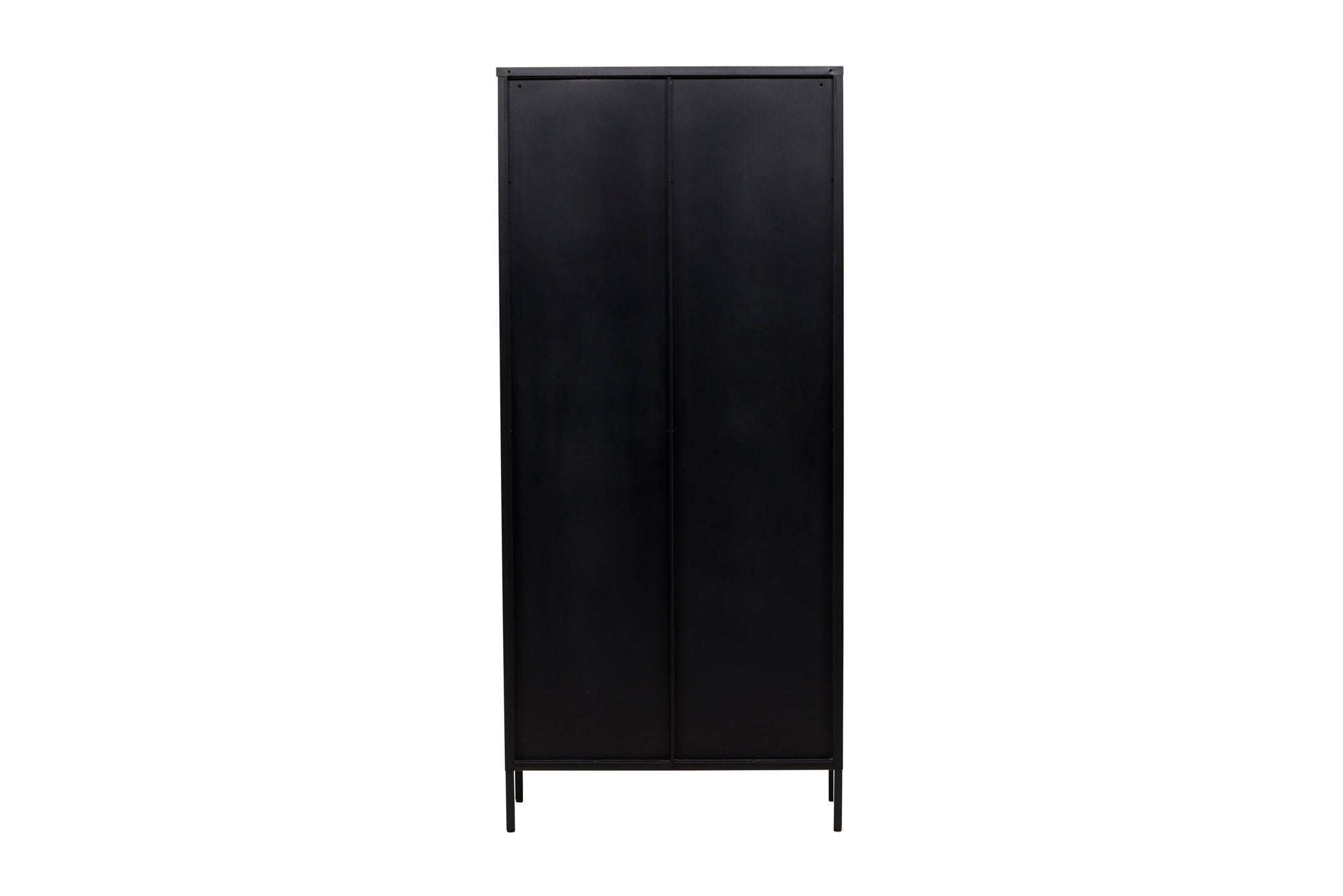 Der elegante Schrank ist vollständig aus schwarzem Stahl gefertigt, was ihm eine robuste und langlebige Konstruktion verleiht. Sein modernes, minimalistisches Design fügt sich geschmackvoll in jeden Raum ein und setzt dabei klare, zeitlose Akzente.