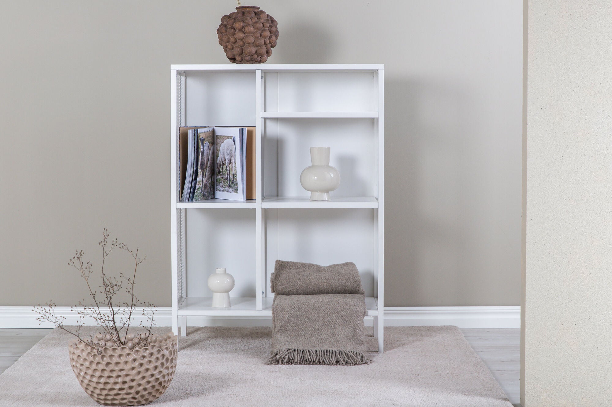 Misha Bücherregal – Weiß / Metall mit Netzdesign