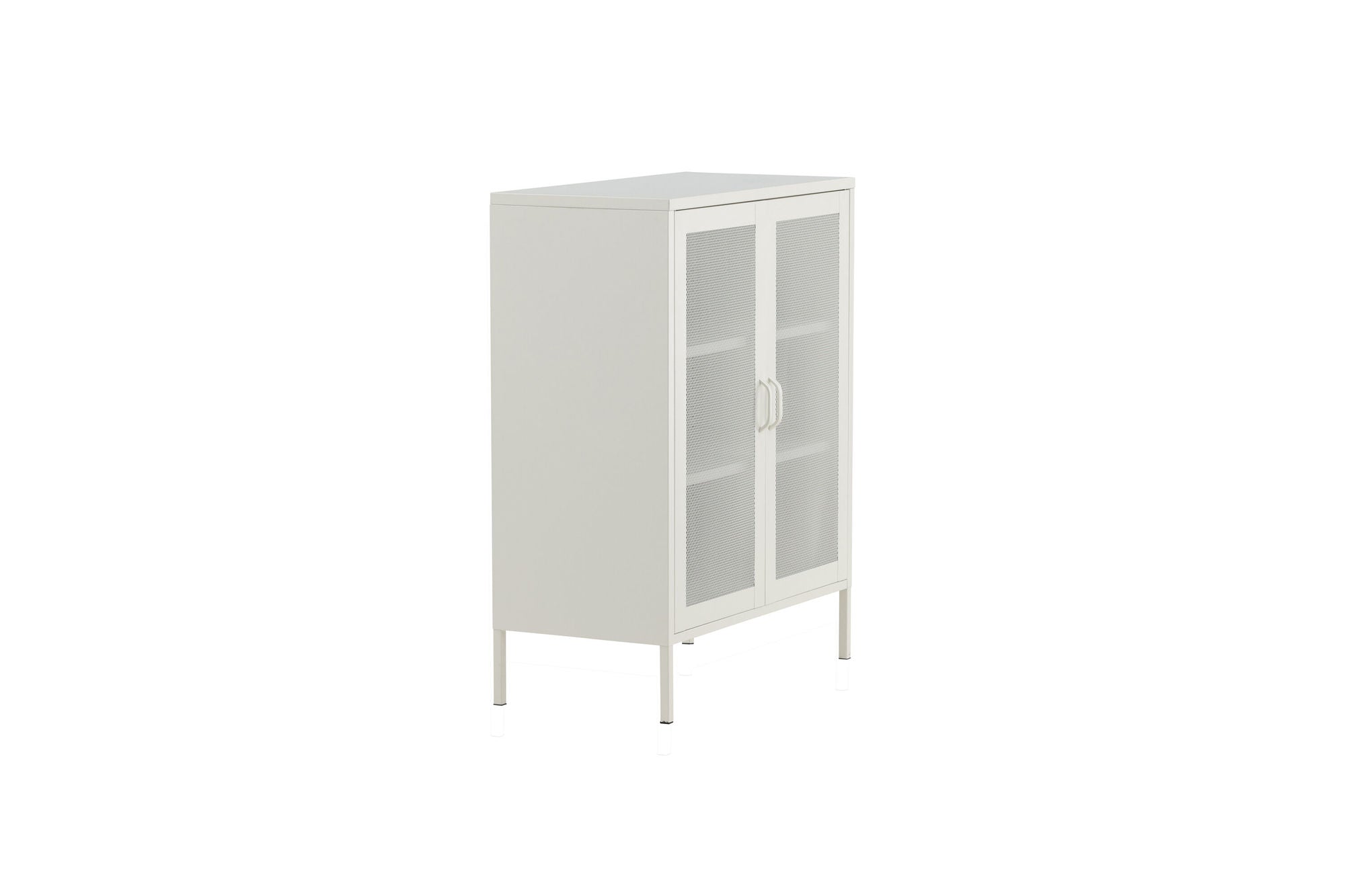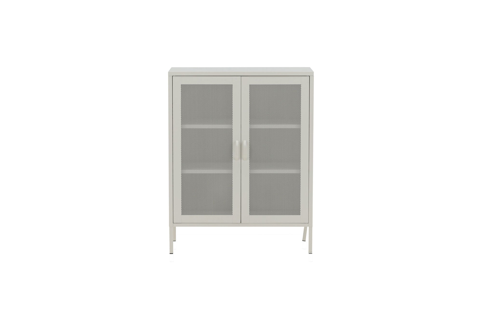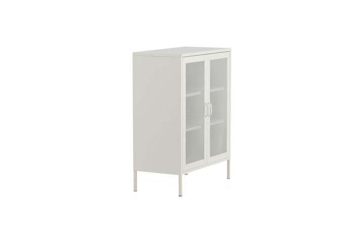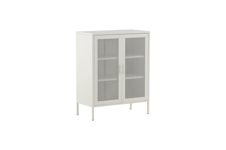 Das Lowboard Misha vereint ein markantes Industrial-Design mit einer hellen, eleganten Ausstrahlung. Gefertigt aus weiß pulverbeschichtetem Stahl, überzeugt es durch Robustheit und klare Linien. Die stilvollen Mesh-Türen sorgen für ein spannendes Spiel aus Licht und Struktur und verleihen dem Möbelstück seinen unverwechselbaren Charakter.