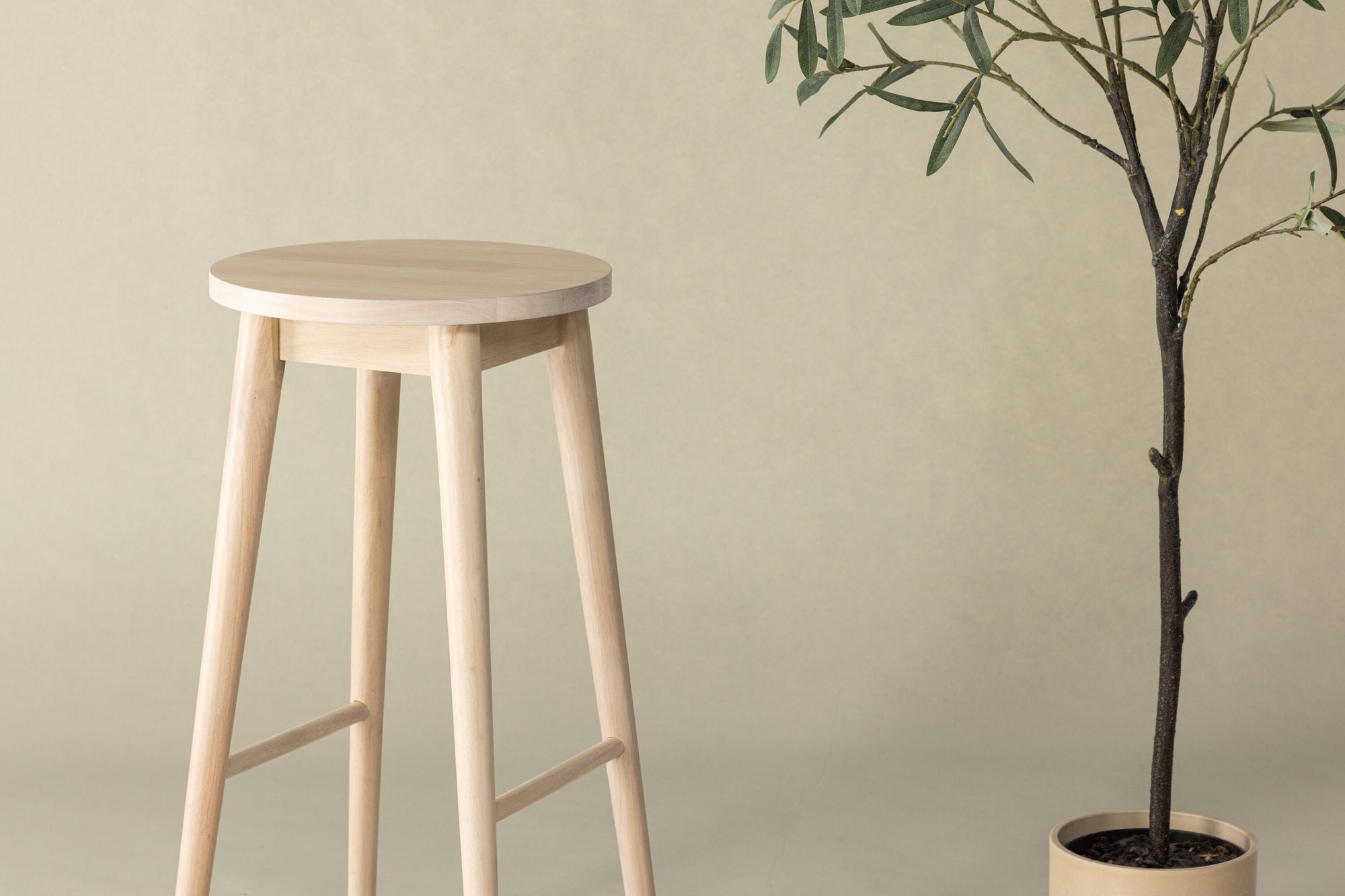 Der Barhocker Mollösand vereint stilvolles Design mit hohem Sitzkomfort und ist die perfekte Ergänzung für Küche, Bartisch oder Hausbar. Gefertigt aus weiß gekalktem Gummibaumholz, bringt er eine moderne, helle Note in Ihr Zuhause und verleiht jedem Raum eine einladende Atmosphäre.