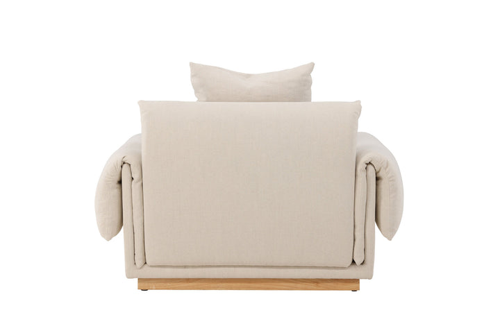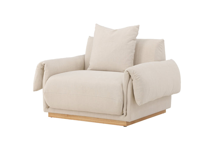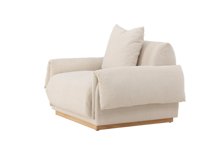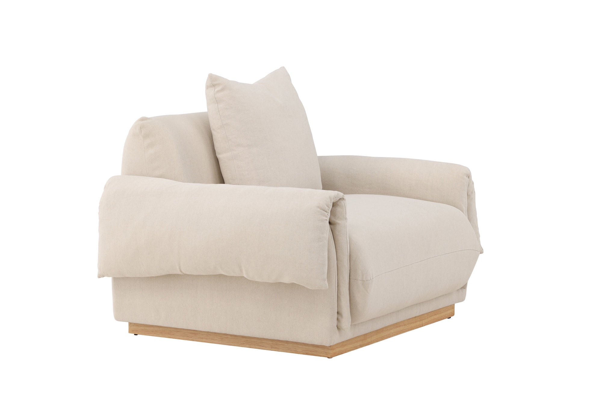 Der angenehm weiche Leinenbezug sorgt nicht nur für ein edles Erscheinungsbild, sondern auch für hohen Sitzkomfort. Gleichzeitig unterstreicht die dezente Farbgebung die ruhige und einladende Atmosphäre des Sessels.
