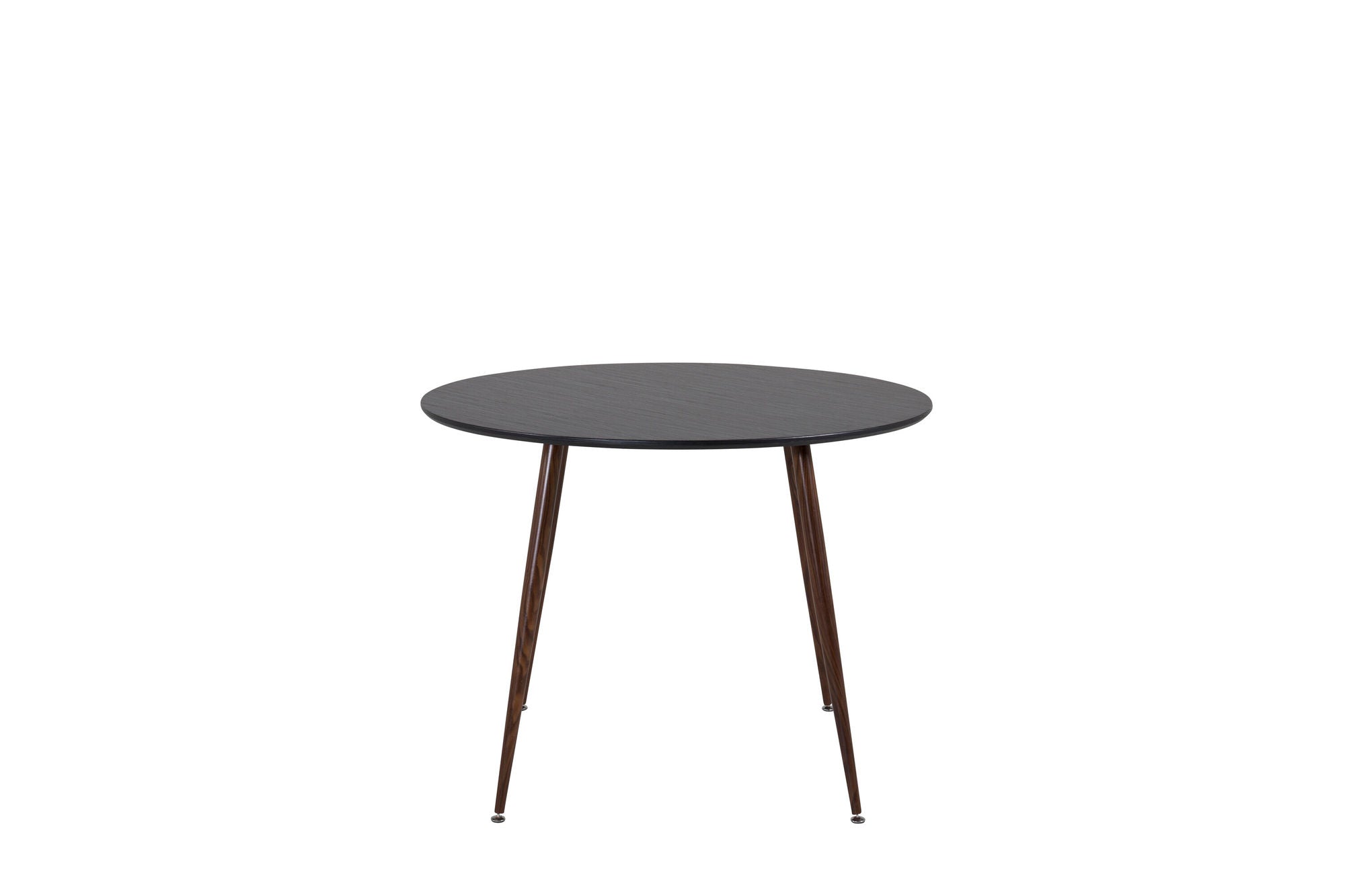 Runder Esstisch Plaza mit schwarzer Tischplatte und Walnuss-Beinen, Ø 100 cm