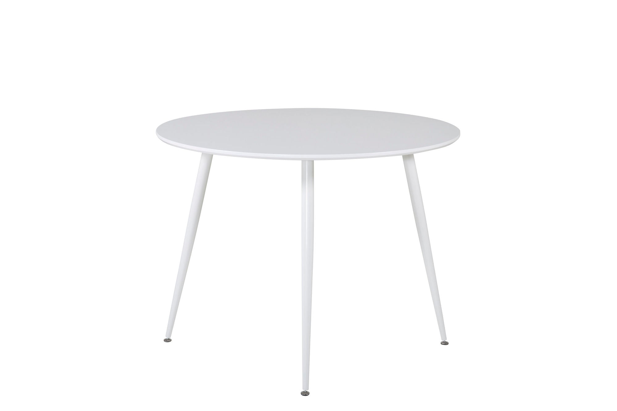 Runder Esstisch Plaza mit weißer Tischplatte und weißen Beinen, Ø 100 cm