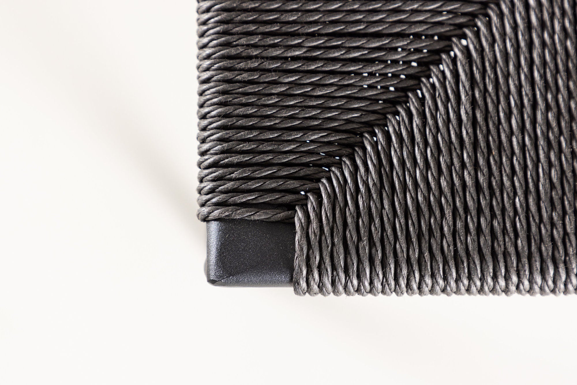 Die Sitzfläche ist aus hochwertigem Seilgeflecht gefertigt, das nicht nur für einen einzigartigen und modernen Look sorgt, sondern auch durch hohen Sitzkomfort überzeugt. Das schwarze Stahlgestell verleiht dem Hocker zusätzliche Stabilität und macht ihn sowohl für den privaten Wohnbereich als auch für den Einsatz in gastronomischen Umgebungen geeignet.