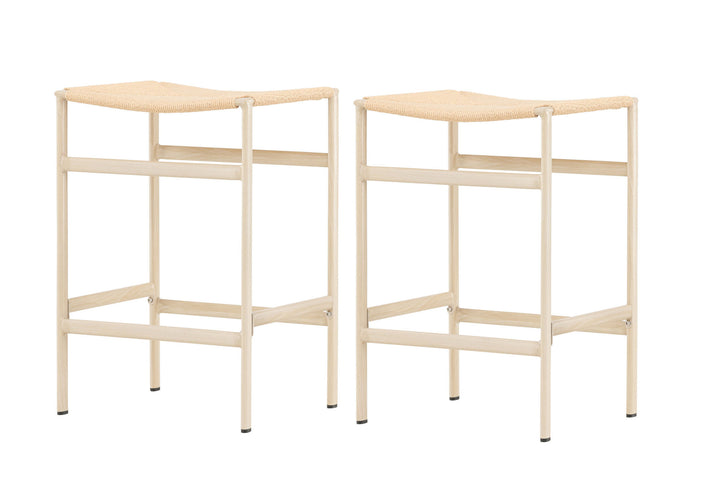Polly Barhocker 2er-Pack – Whitewash / Naturfarbenes Seilgeflecht