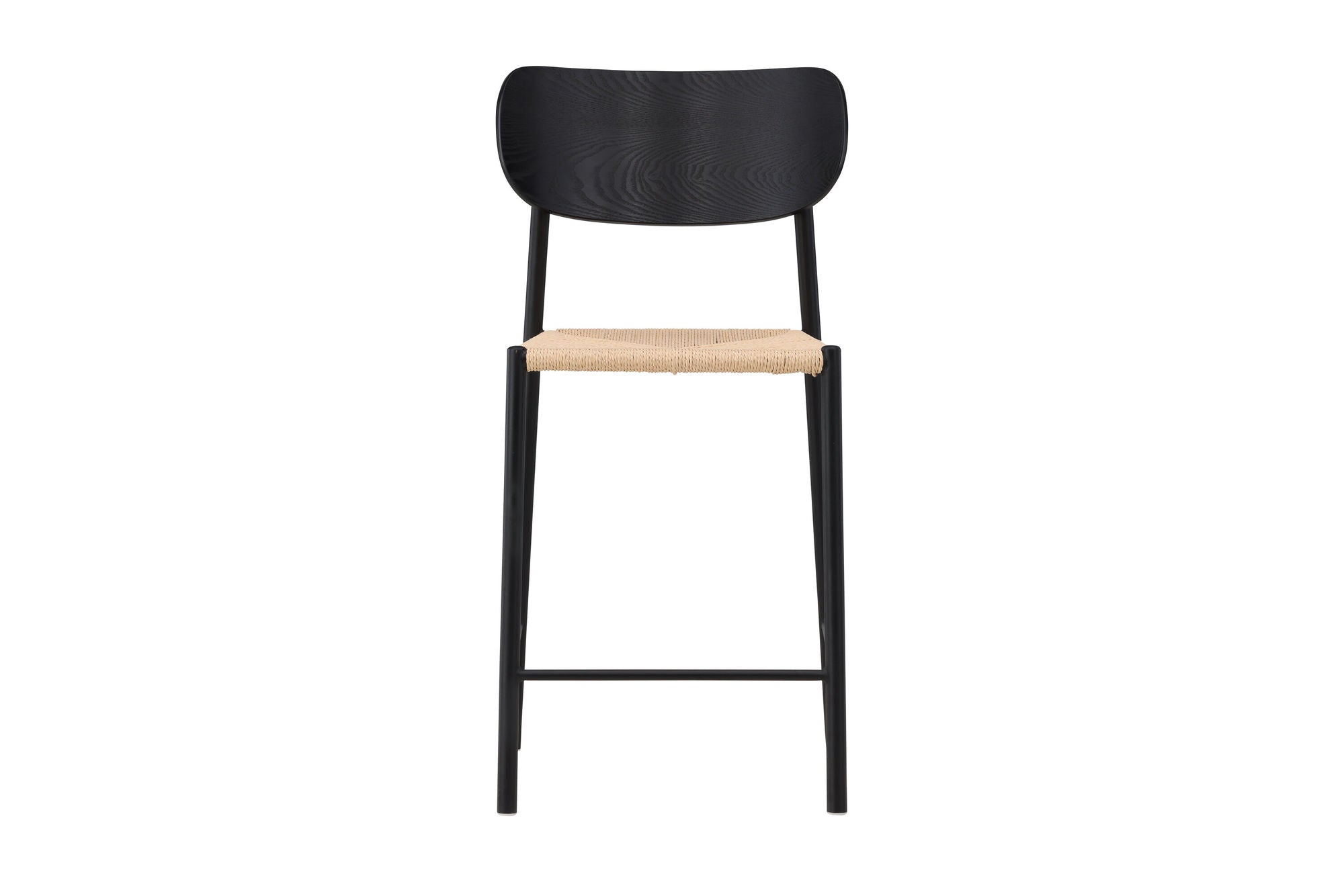 Polly Barhocker mit Rückenlehne – Schwarz / Natur Seilgeflecht