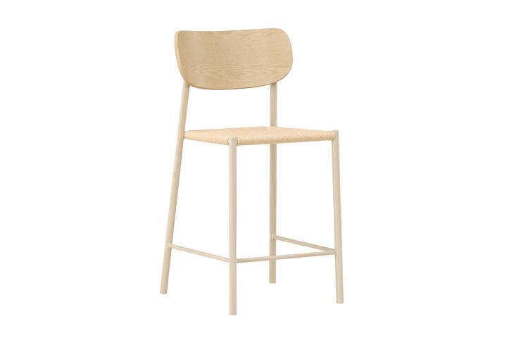 Polly Barhocker mit Rückenlehne – Whitewash / Natur
