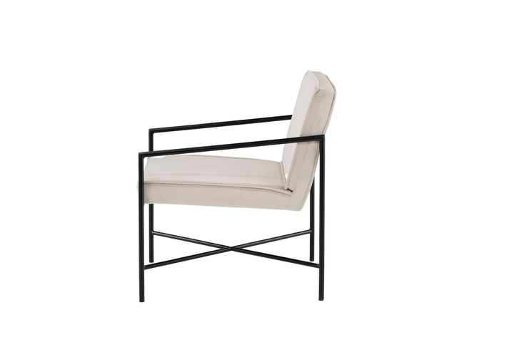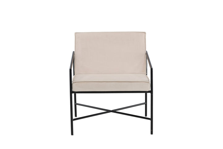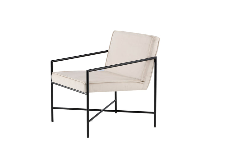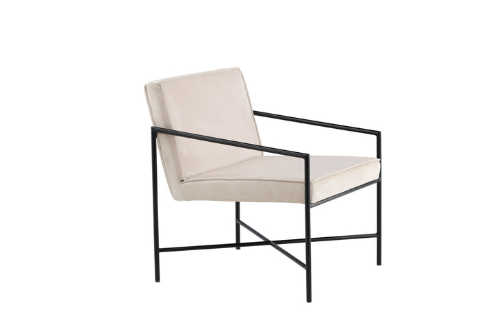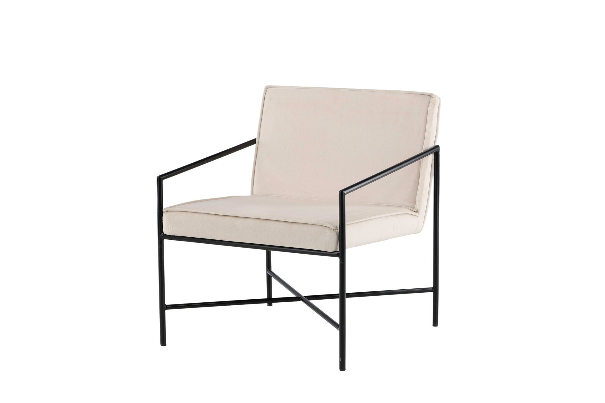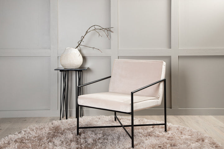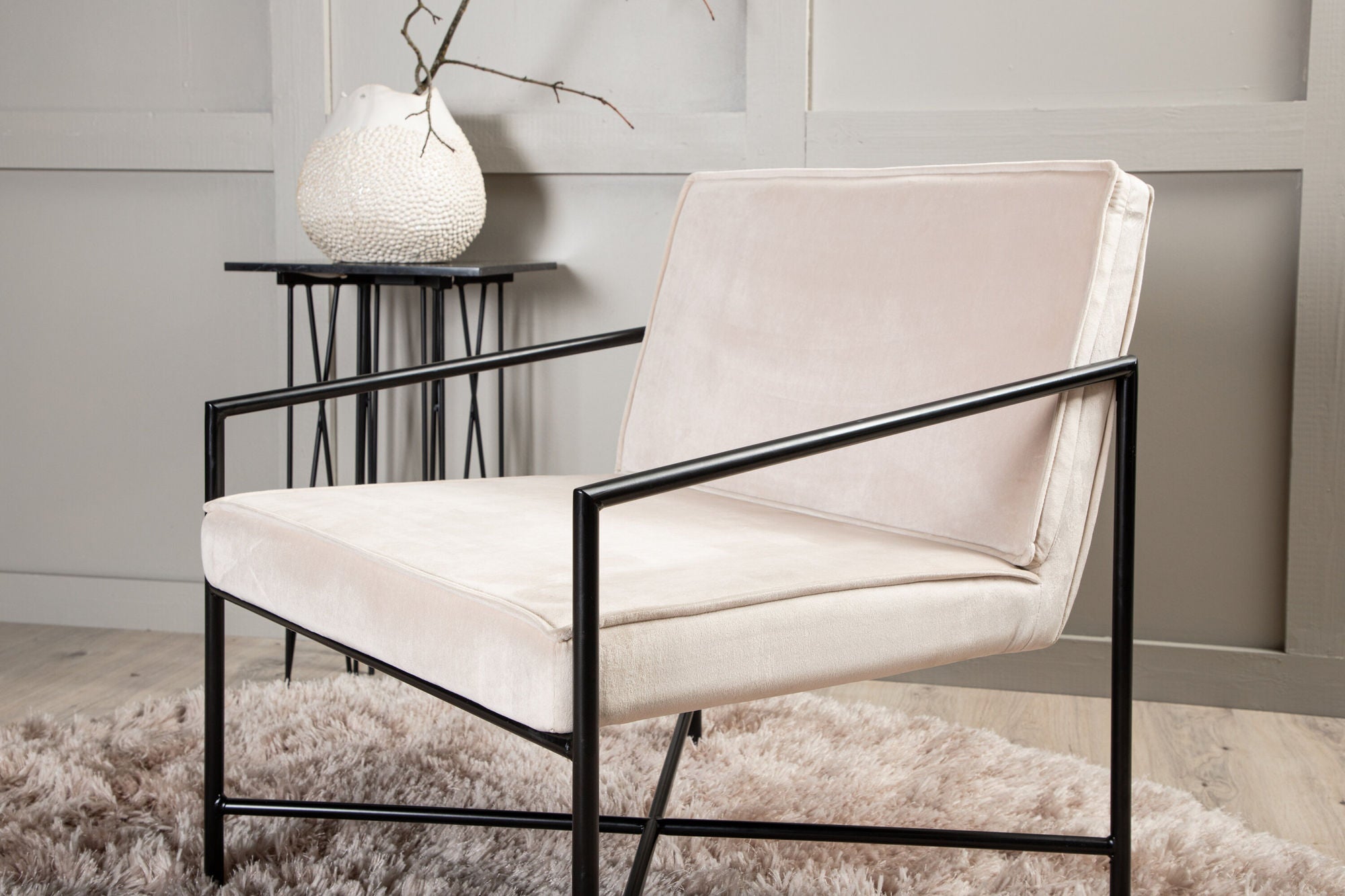 Der Rakel Sessel ist ein echtes Design-Statement und verbindet skandinavischen Minimalismus mit zeitloser Eleganz. Das Gestell aus schwarz pulverbeschichtetem Metall wirkt filigran und modern, während das hochwertige Samtpolster in Beige für eine luxuriöse Note sorgt. Mit seiner optimalen Polsterung und angenehmen Neigung bietet Rakel höchsten Sitzkomfort – perfekt zum Entspannen nach einem langen Tag.