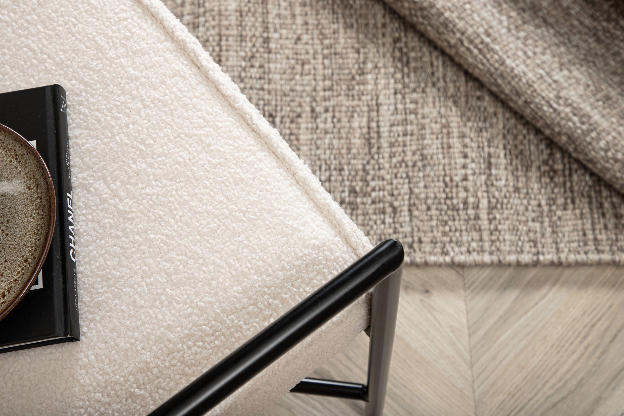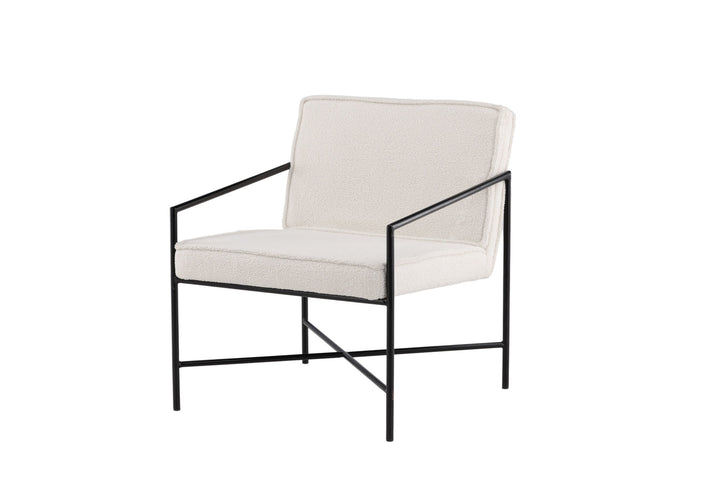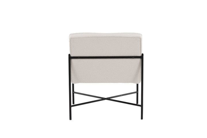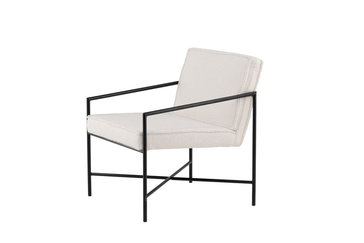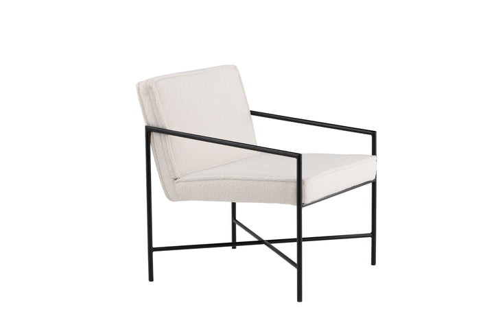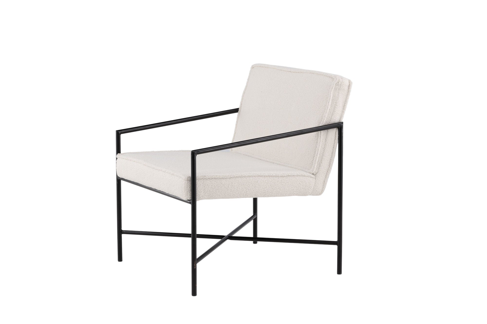Der Rakel Sessel kombiniert modernes skandinavisches Design mit höchstem Sitzkomfort. Der Bezug aus kuscheligem Teddy-Stoff in Offwhite sorgt für eine warme, einladende Ausstrahlung und macht den Sessel zum perfekten Platz für entspannte Momente. Das schlanke Gestell aus schwarz pulverbeschichtetem Metall verleiht dem Design einen modernen, minimalistischen Charakter und schafft einen stilvollen Kontrast.