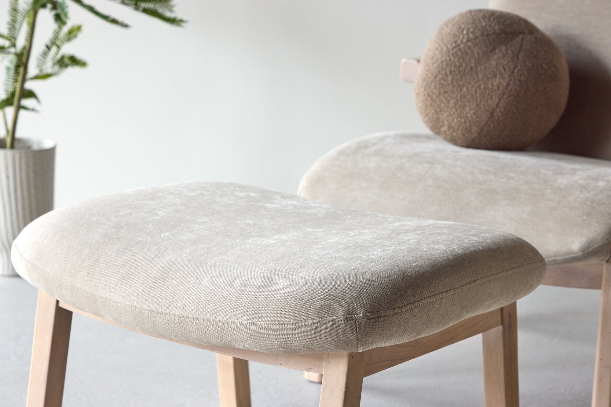 Rile Sessel mit Hocker – Whitewash / Beige