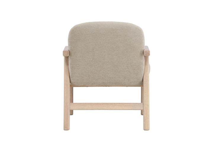 Der Rile Sessel überzeugt durch seine klare Formensprache, hochwertige Materialien und einen zeitlosen Look. Mit einem stabilen Rahmen aus Rubberwood in elegantem Whitewash und einer weich gepolsterten Sitzfläche in beigem Polyester verbindet er Robustheit mit wohnlicher Behaglichkeit.
