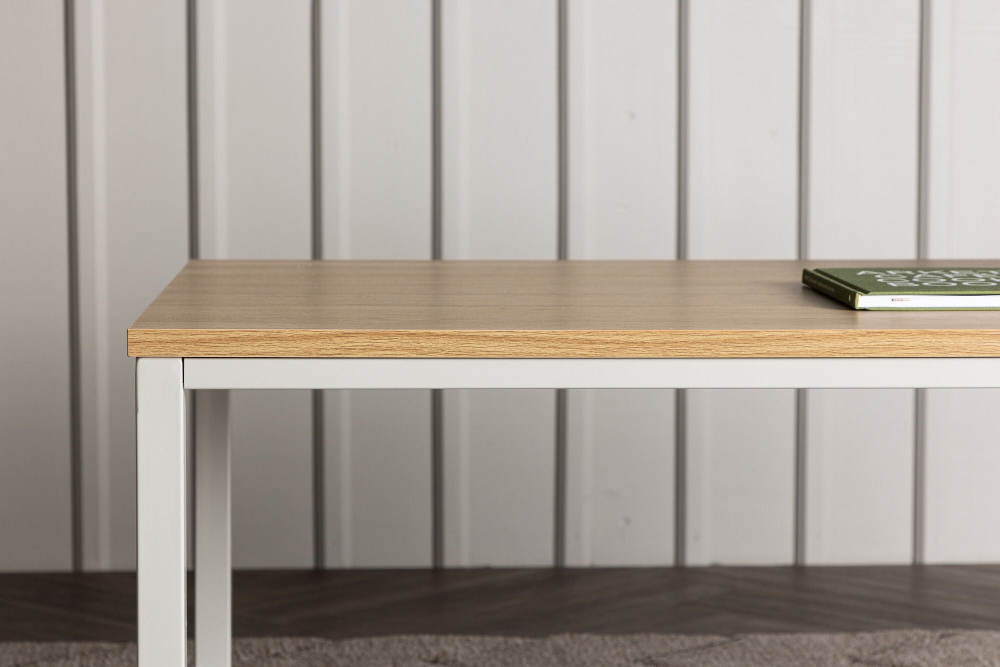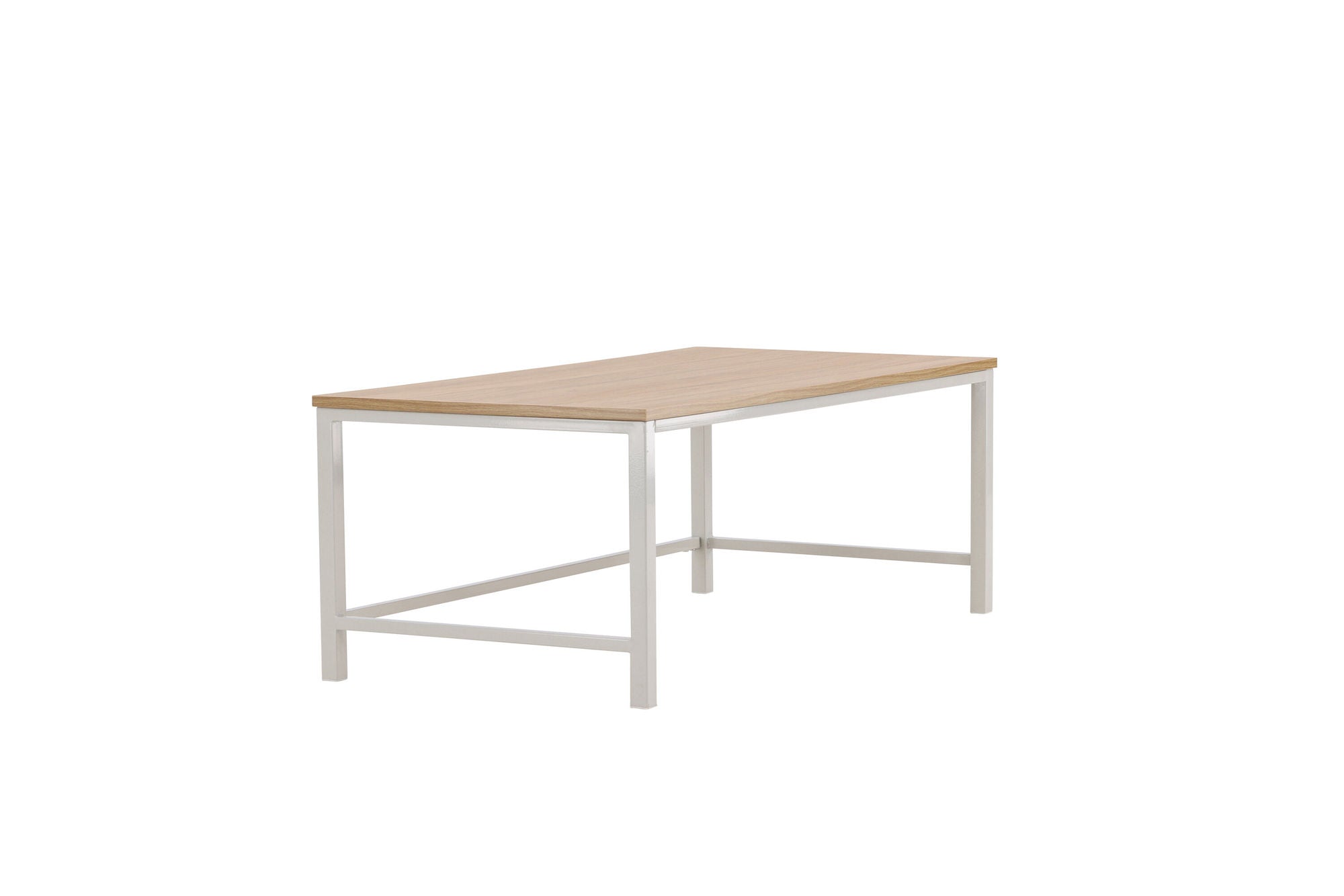 Der Rise Couchtisch verbindet modernes Industriedesign mit natürlicher Eleganz. Mit seinem grauen Stahlgestell und der Tischplatte aus MDF in heller Holzoptik wird er zum stilvollen Mittelpunkt Ihres Wohnzimmers.