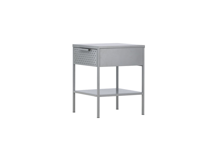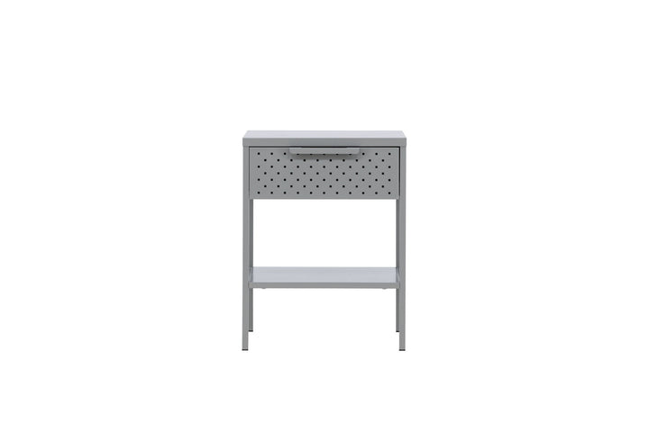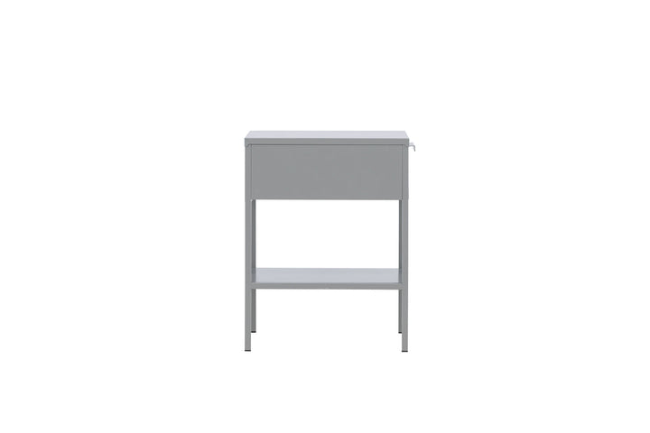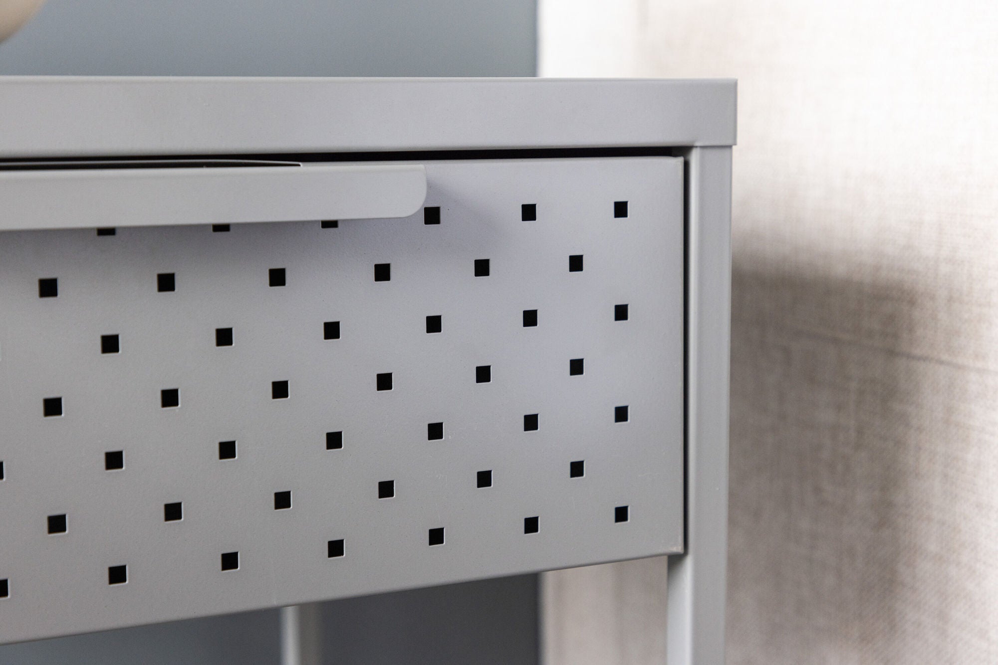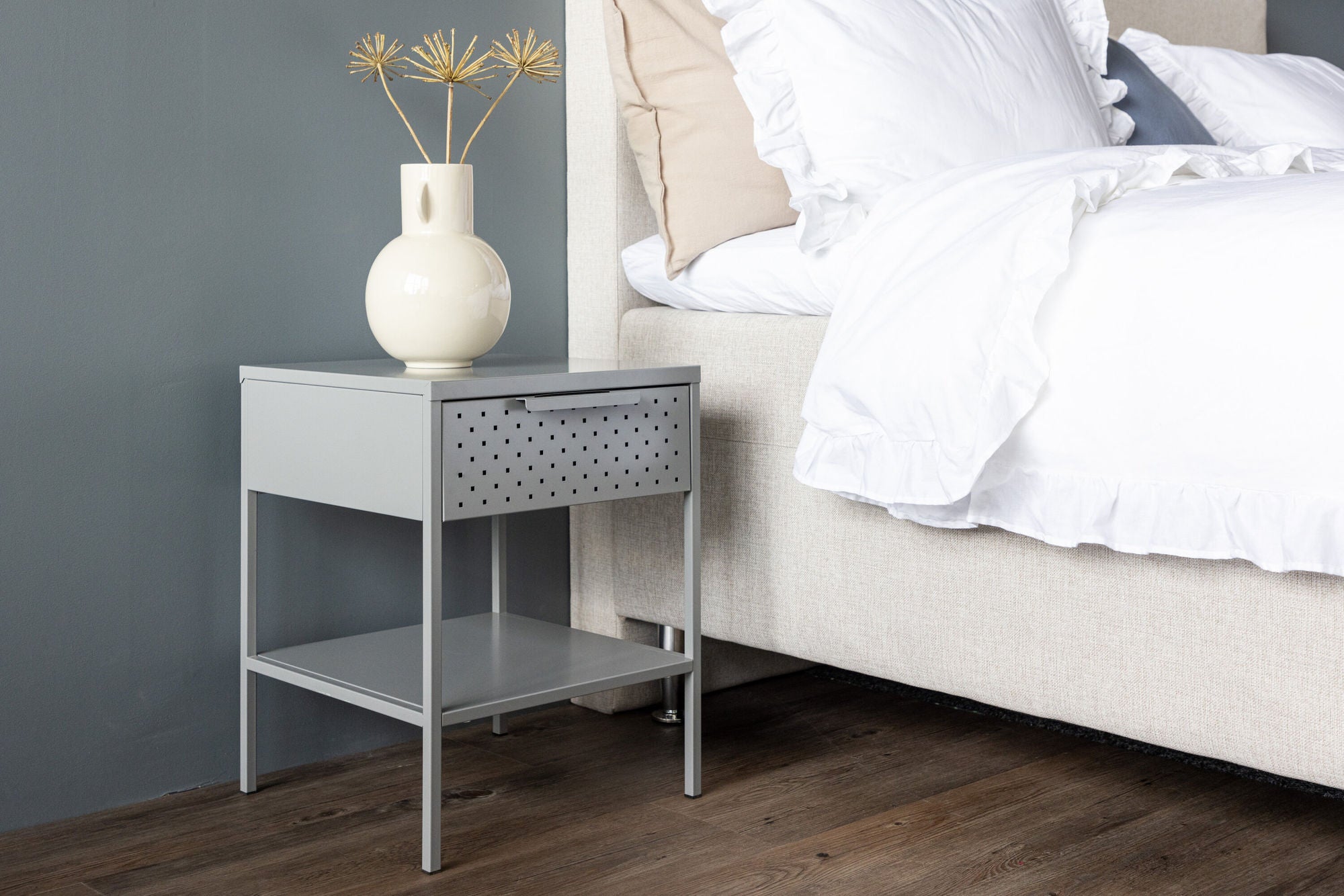 Die Oberfläche aus pulverbeschichtetem Stahl in Hellgrau verleiht dem Sacramento Nachttisch eine elegante Note. Er fügt sich harmonisch in bestehende Einrichtungskonzepte ein oder setzt einen bewusst gesetzten Kontrast – immer ein echter Blickfang.