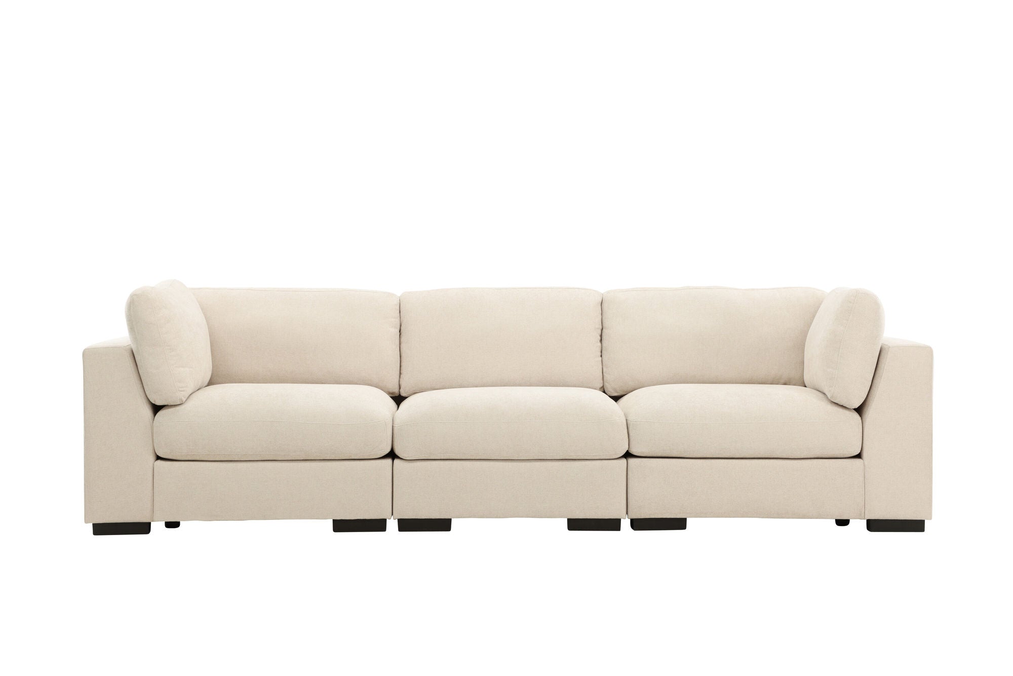 Das Salerno Sofa Set vereint modernes Design mit höchstem Sitzkomfort und wird schnell zum Mittelpunkt Ihres Wohnzimmers. Mit seinem zeitlosen Beige-Ton und den kontrastierenden schlanken Beinen in Schwarz setzt es einen stilvollen Akzent, der sich nahtlos in unterschiedliche Einrichtungsstile einfügt.