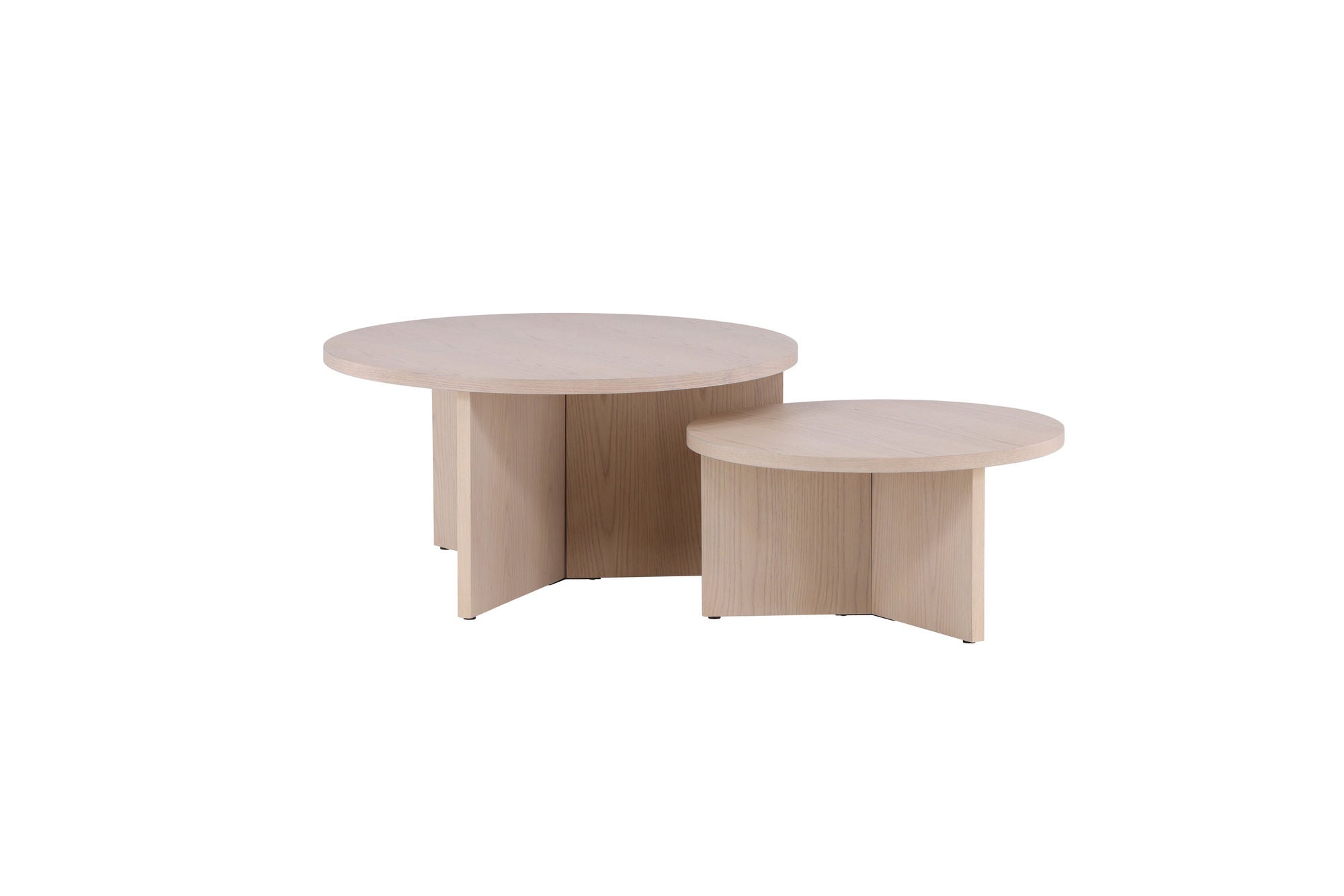 Die Saltö Couchtischgruppe besteht aus zwei runden Tischen in unterschiedlichen Größen und überzeugt mit einer stilvollen Optik in Weiß veredelt. Das zeitlose Design macht das Set zu einer eleganten Ergänzung für jedes Zuhause.