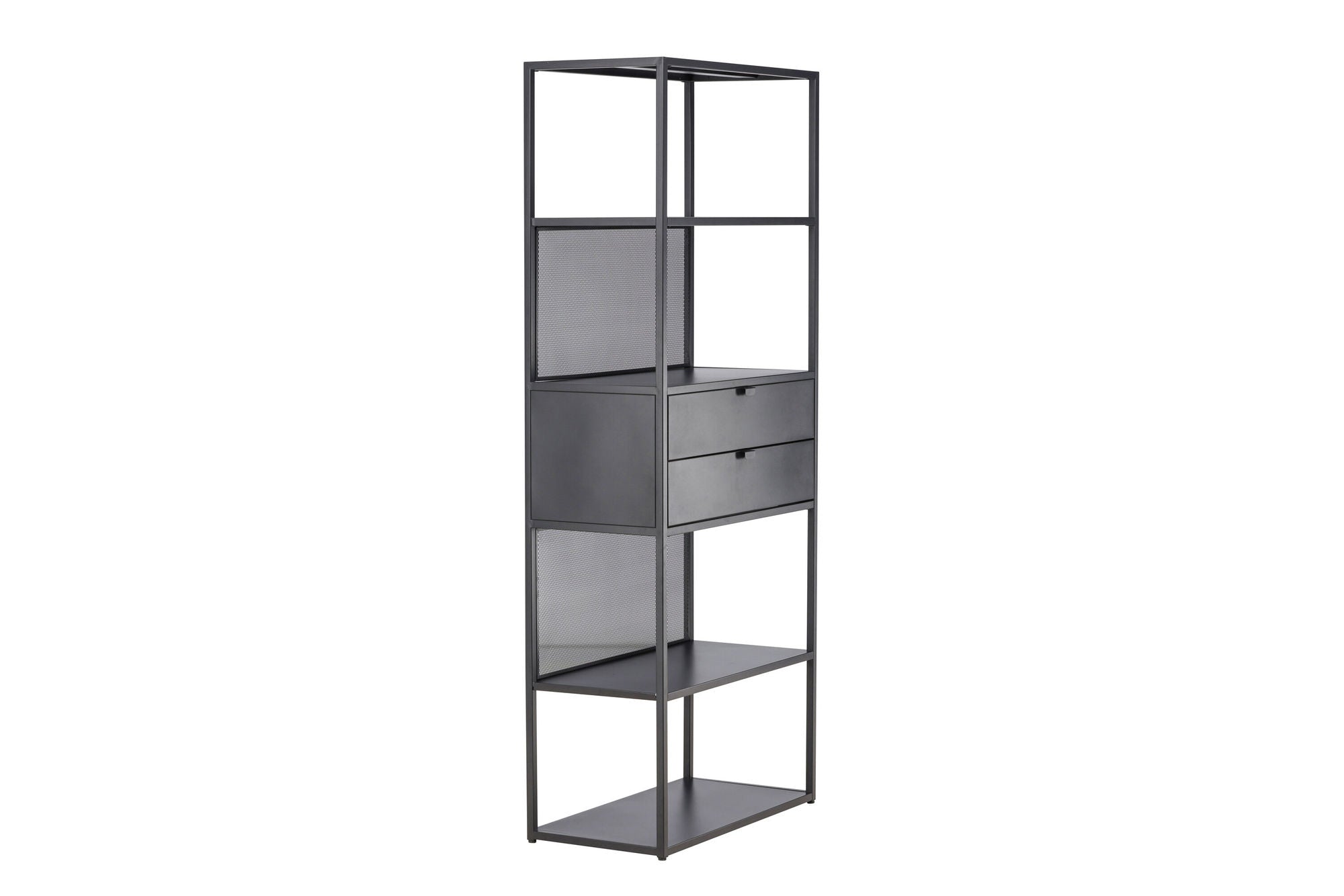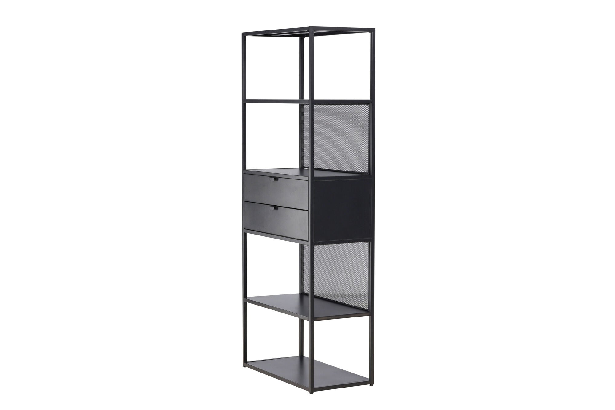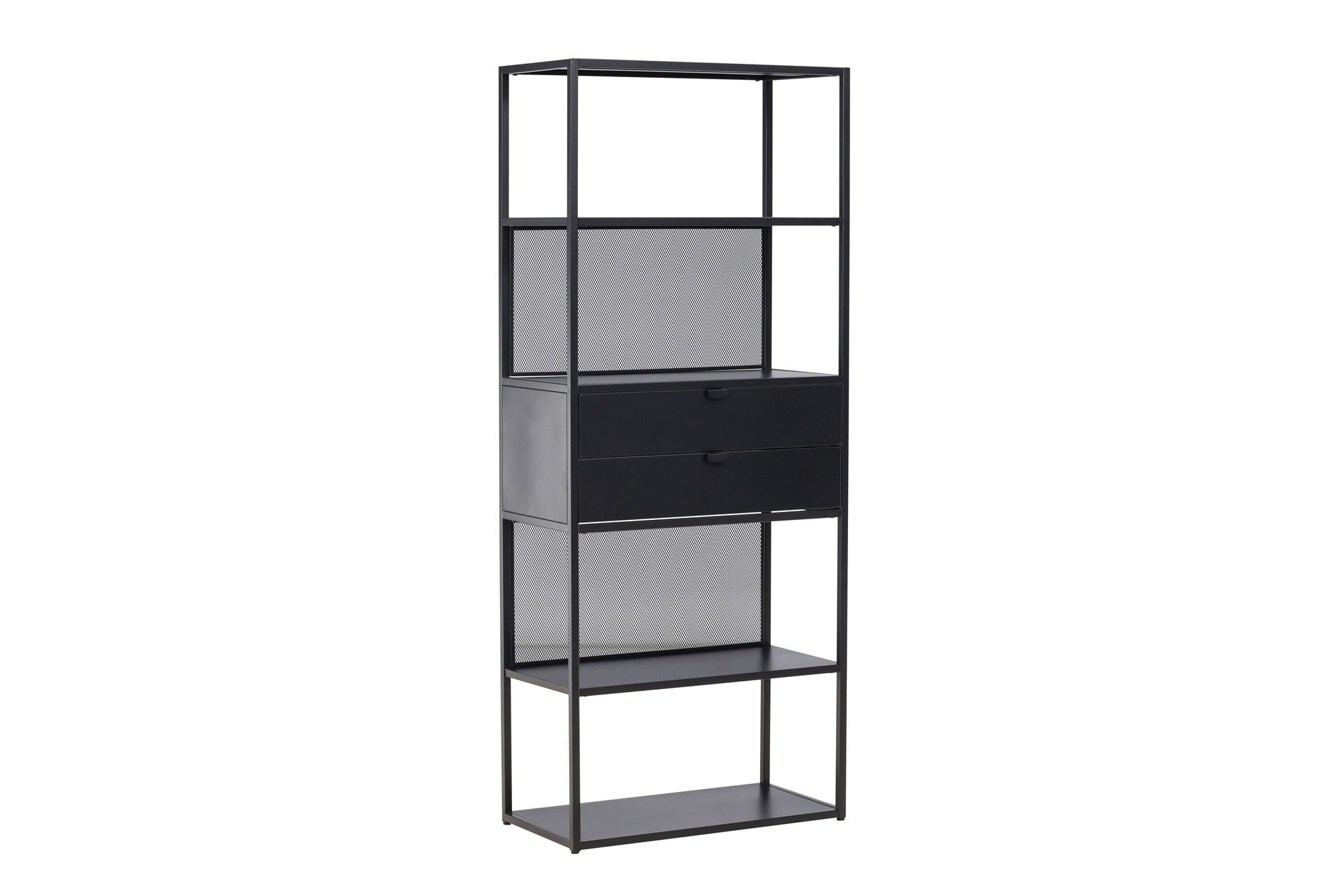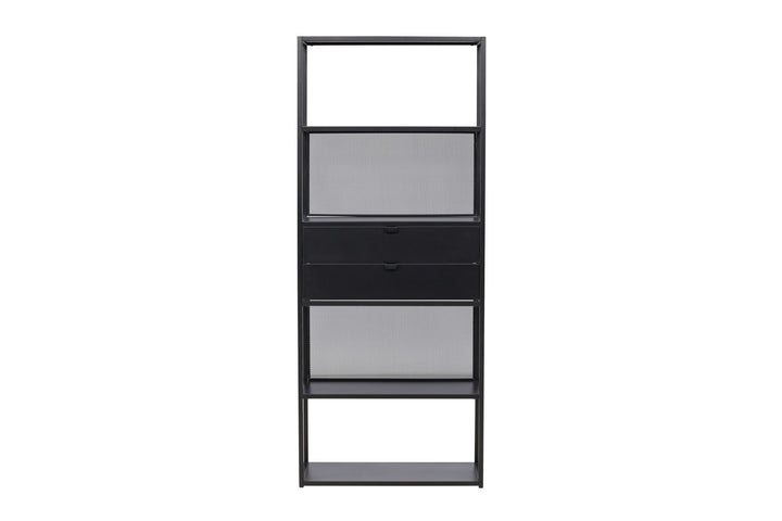 Mit seinen vier offenen Regalfächern kannst du Dekorationen, Pflanzen, Vasen oder Bücher ganz nach deinem persönlichen Geschmack arrangieren. Zwei praktische Schubladen in der Mitte bieten dir zudem Platz für Dinge, die du lieber unsichtbar verstauen möchtest – so bleibt dein Zuhause ordentlich und aufgeräumt.